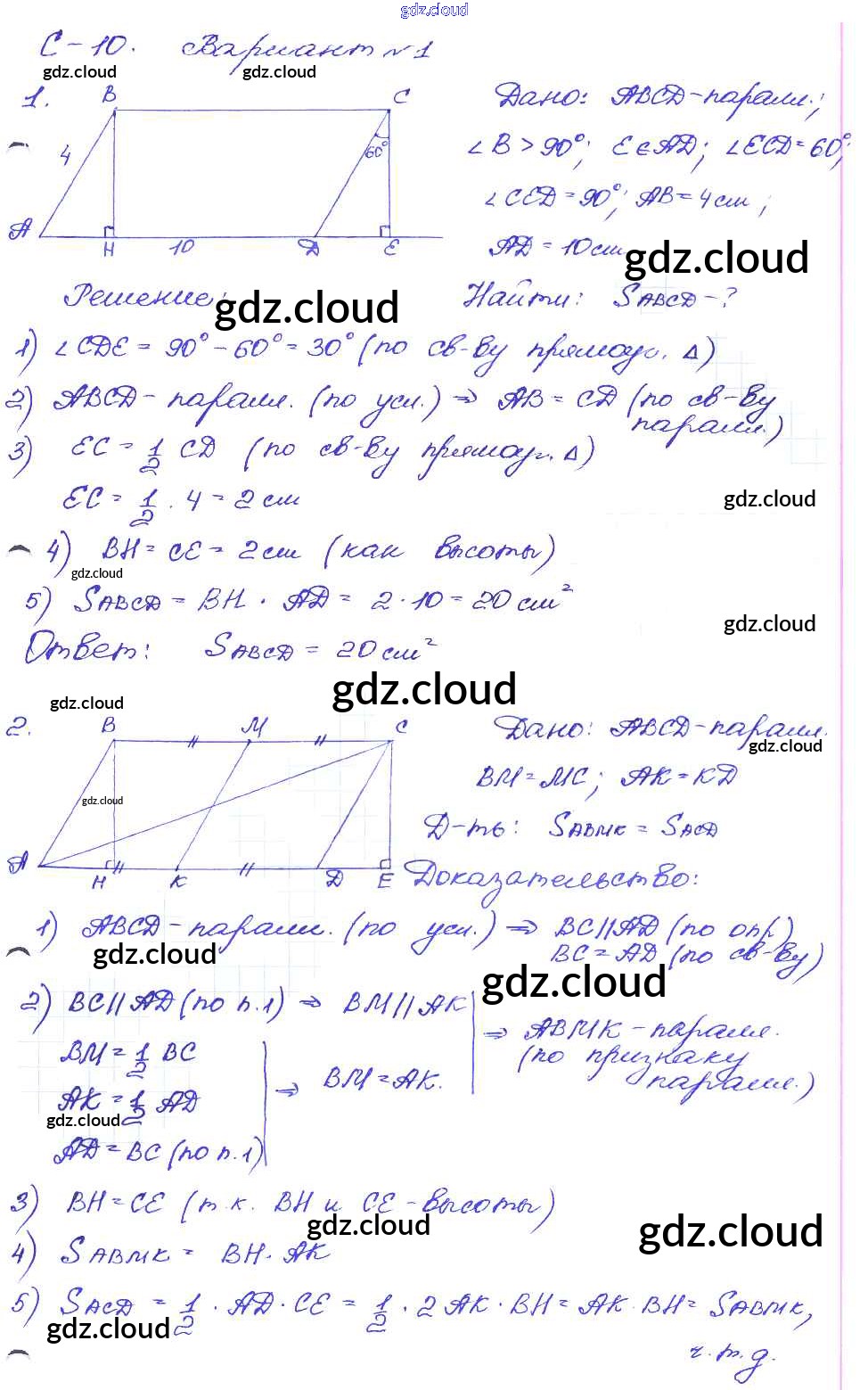СР №10. Площадь параллелограмма Ответы к Самостоятельным работам по Геометрии 8 класс Дидактические материалы Зив Просвещение