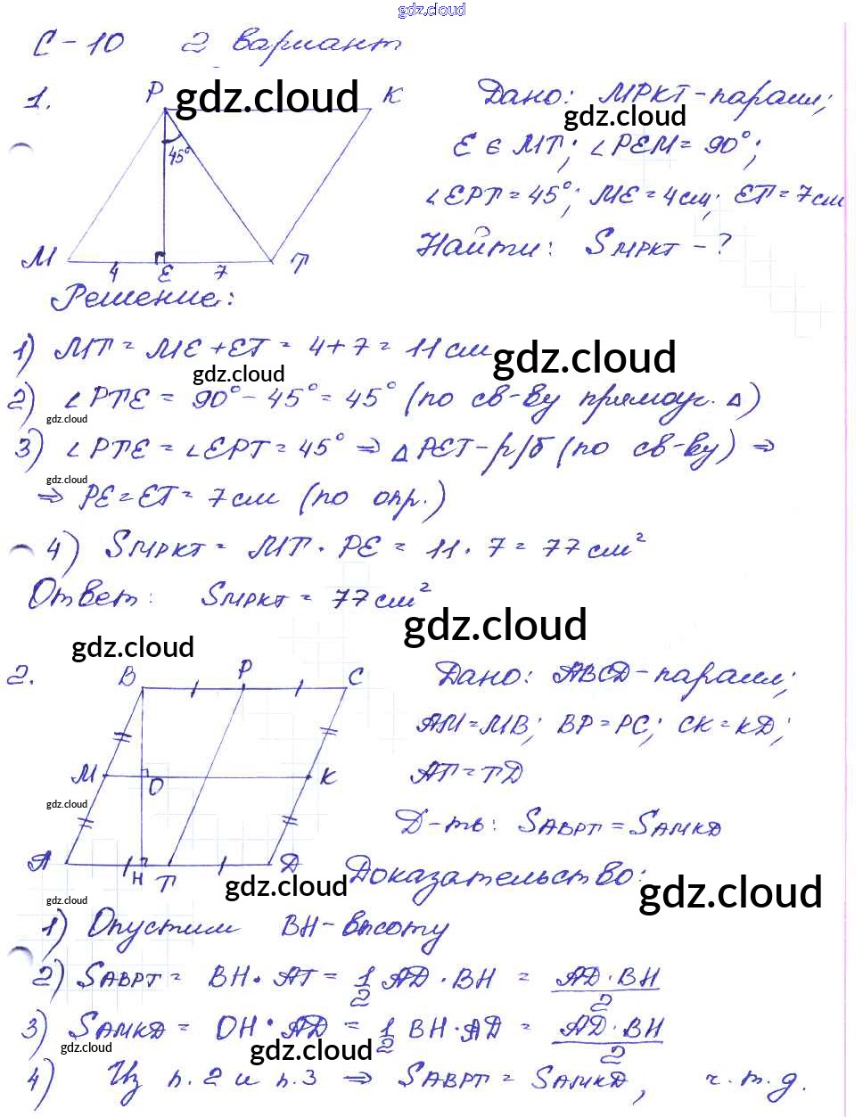 СР №10. Площадь параллелограмма Ответы к Самостоятельным работам по Геометрии 8 класс Дидактические материалы Зив Просвещение