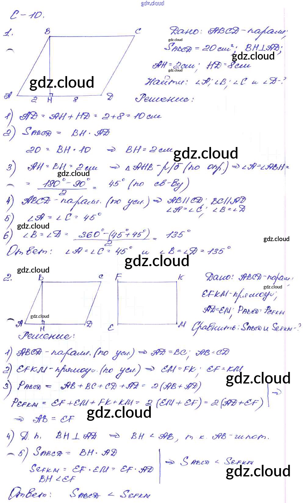 СР №10. Площадь параллелограмма Ответы к Самостоятельным работам по Геометрии 8 класс Дидактические материалы Зив Просвещение