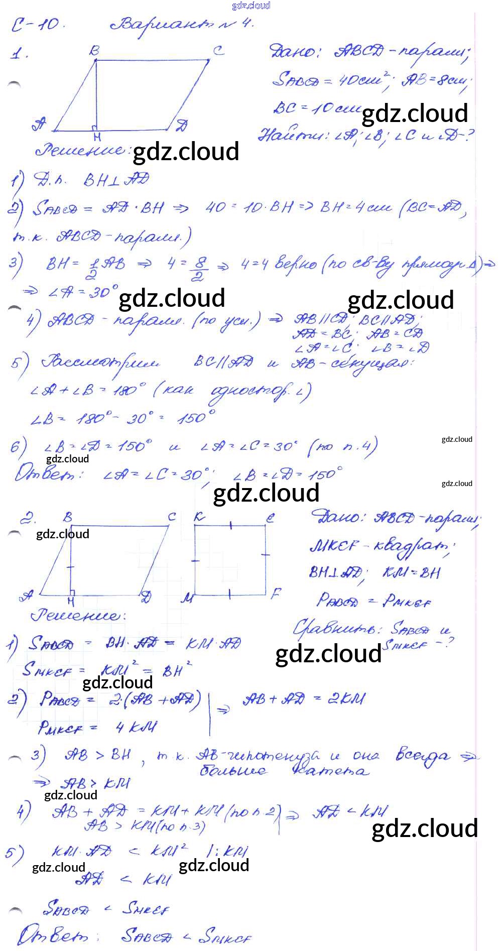 СР №10. Площадь параллелограмма Ответы к Самостоятельным работам по Геометрии 8 класс Дидактические материалы Зив Просвещение