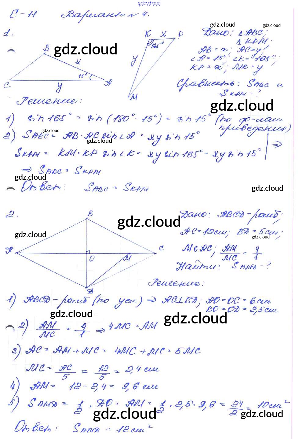 СР №11. Площадь треугольника Ответы к Самостоятельным работам по Геометрии 8 класс Дидактические материалы Зив Просвещение