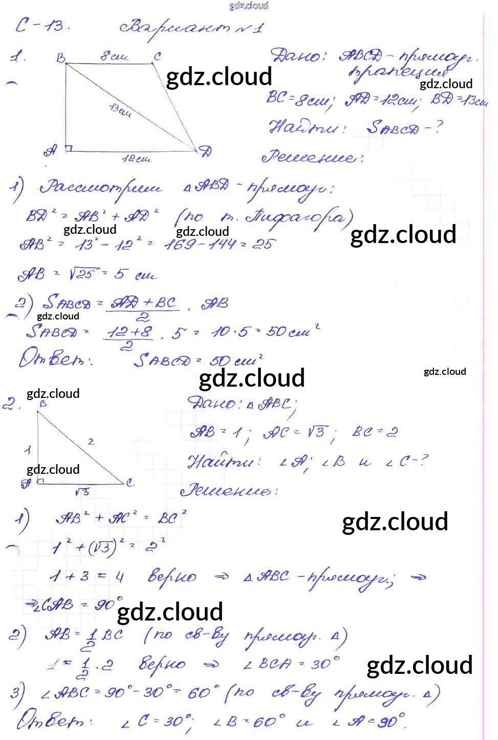 Ответ на задание вариант-1 Дидактические материалы Геометрия за 8 (восьмой) класс Зив, Мейлер 2016