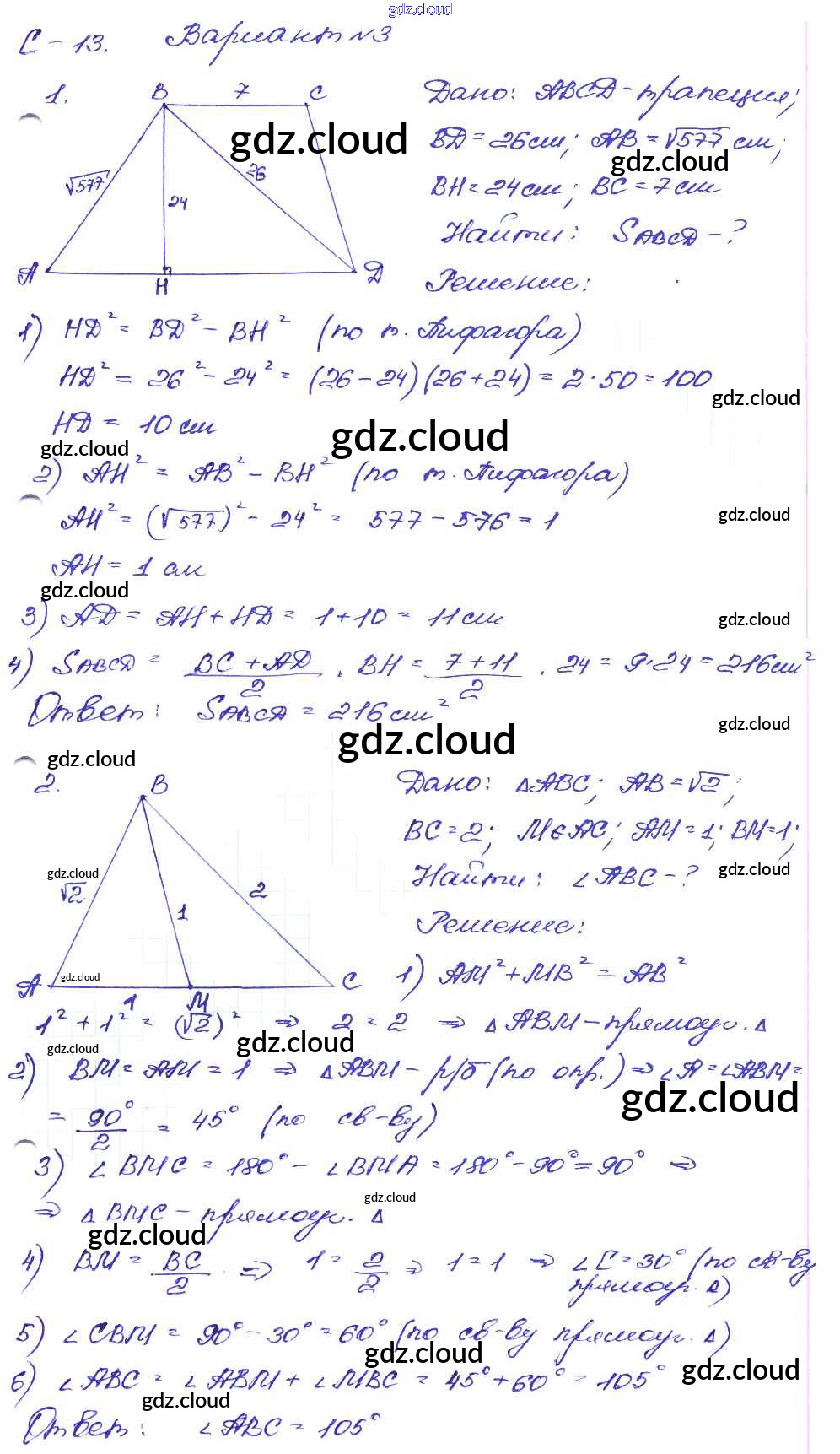 СР №13. Теорема Пифагора Ответы к Самостоятельным работам по Геометрии 8 класс Дидактические материалы Зив Просвещение