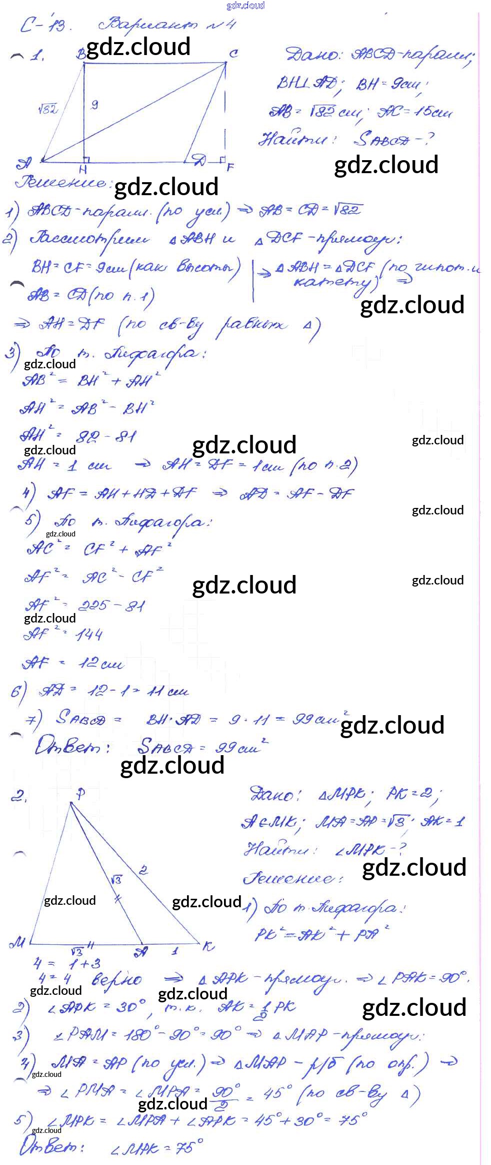 СР №13. Теорема Пифагора Ответы к Самостоятельным работам по Геометрии 8 класс Дидактические материалы Зив Просвещение