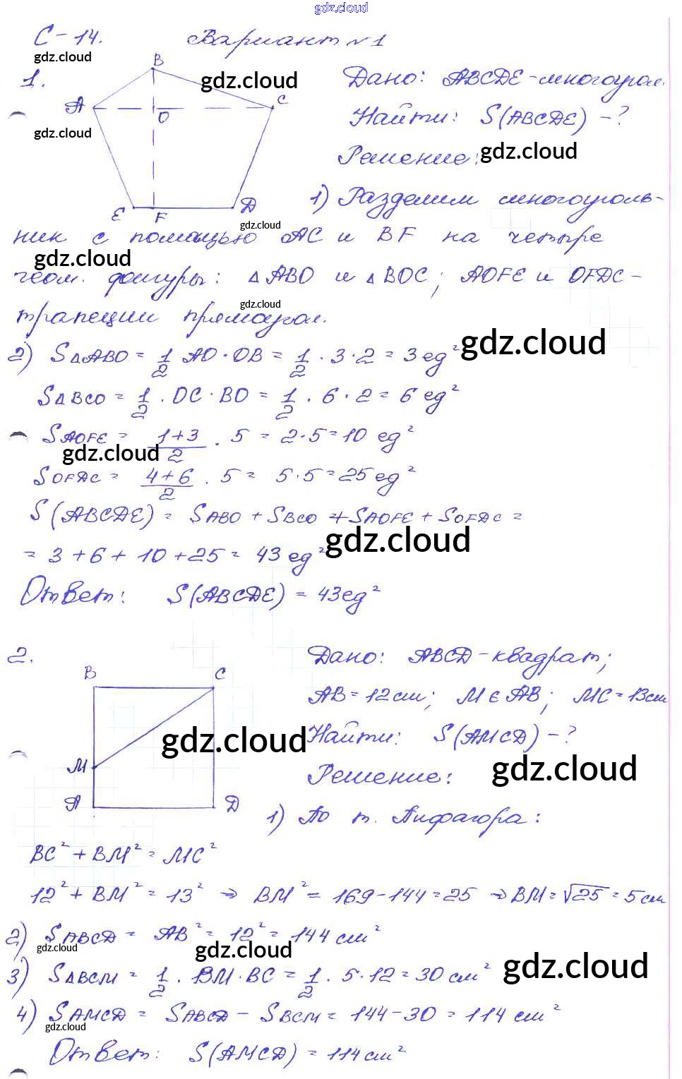 СР №14. Площади многоугольников Ответы к Самостоятельным работам по Геометрии 8 класс Дидактические материалы Зив Просвещение