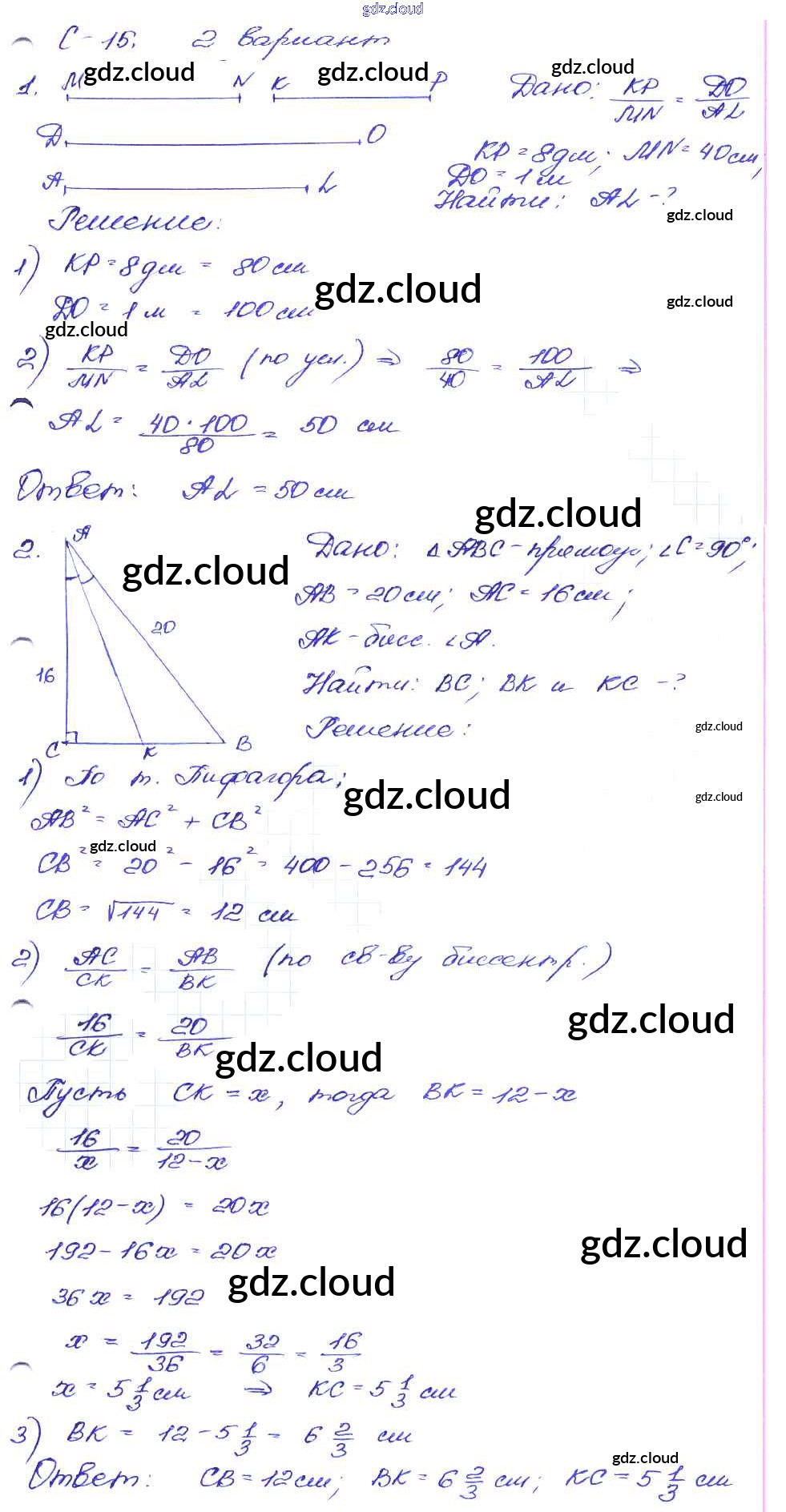 СР №15. Пропорциональные отрезки Ответы к Самостоятельным работам по Геометрии 8 класс Дидактические материалы Зив Просвещение