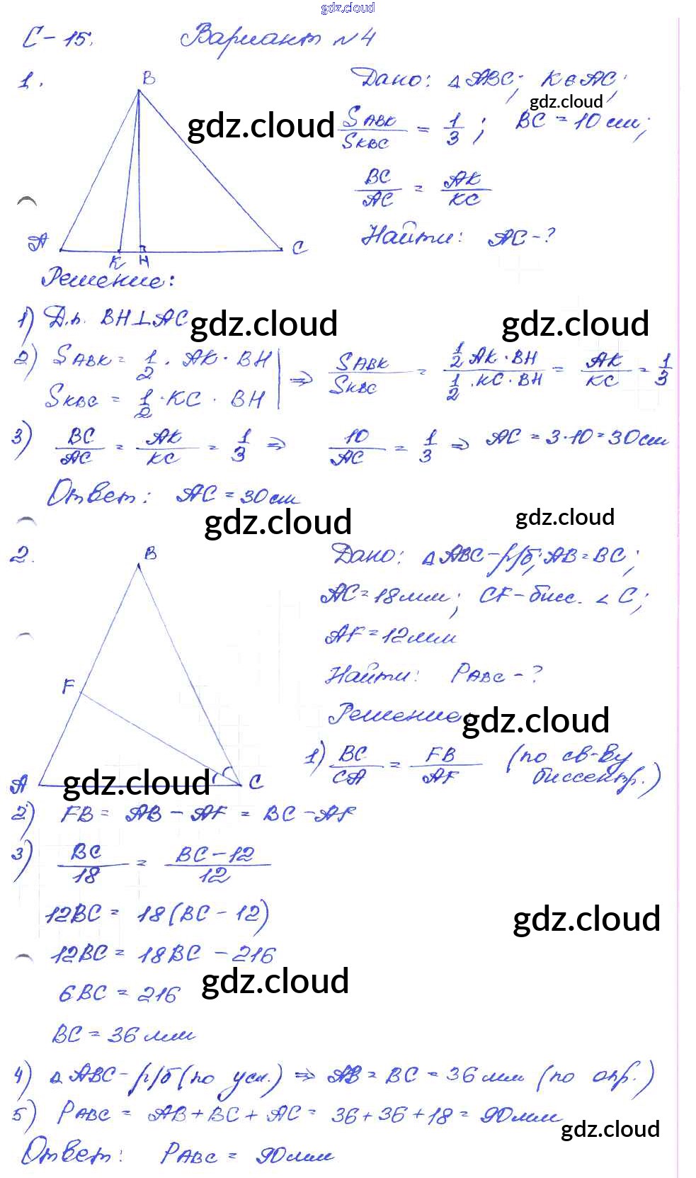 СР №15. Пропорциональные отрезки Ответы к Самостоятельным работам по Геометрии 8 класс Дидактические материалы Зив Просвещение