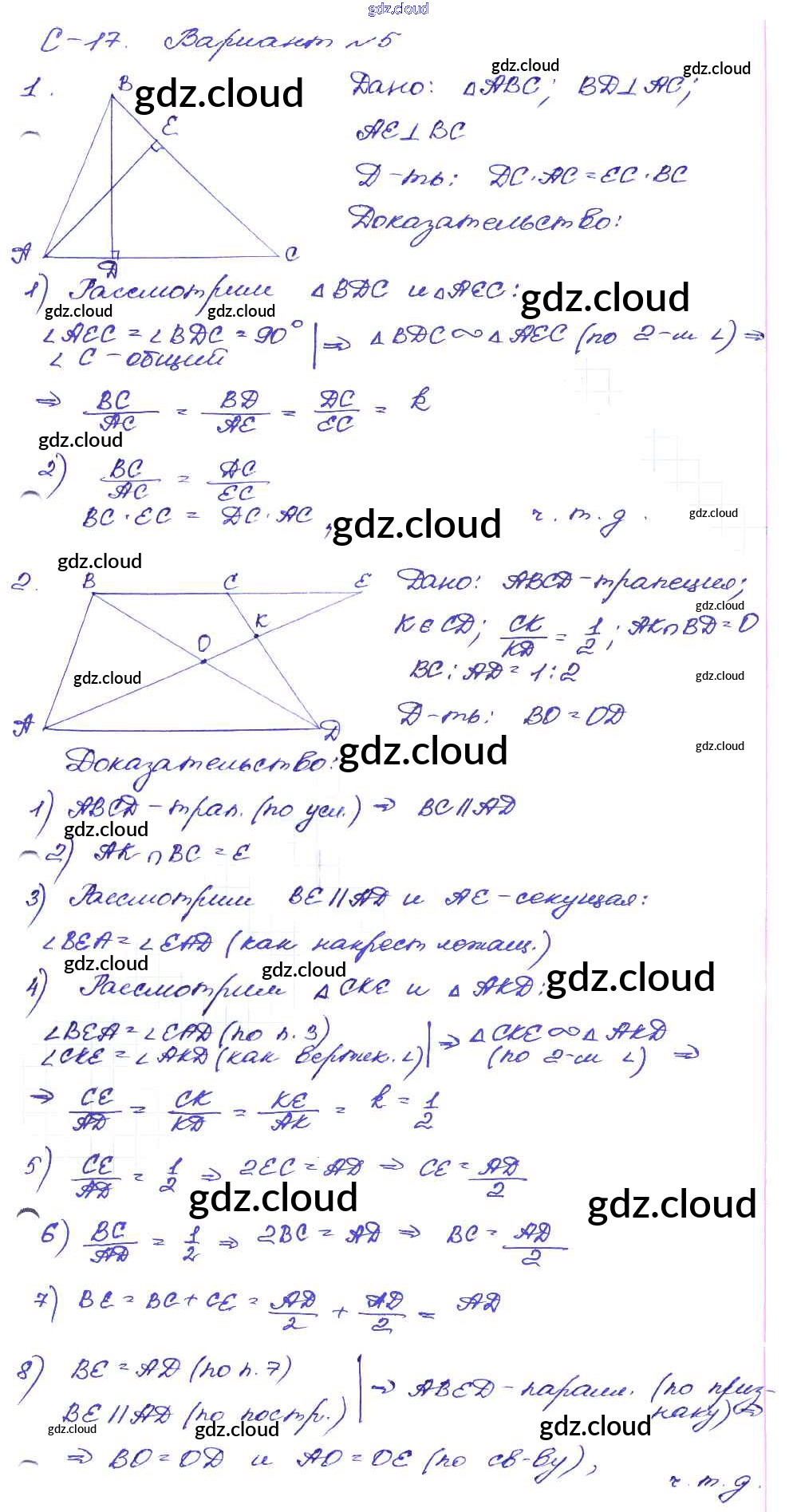 СР №17. Первый признак подобия треугольников Ответы к Самостоятельным работам по Геометрии 8 класс Дидактические материалы Зив Просвещение