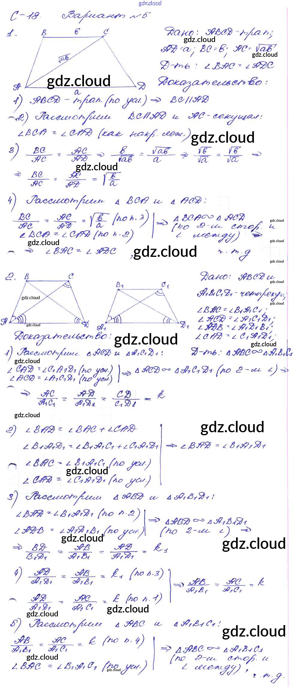 СР №18. Второй и третий признак подобия треугольников Ответы к Самостоятельным работам по Геометрии 8 класс Дидактические материалы Зив Просвещение