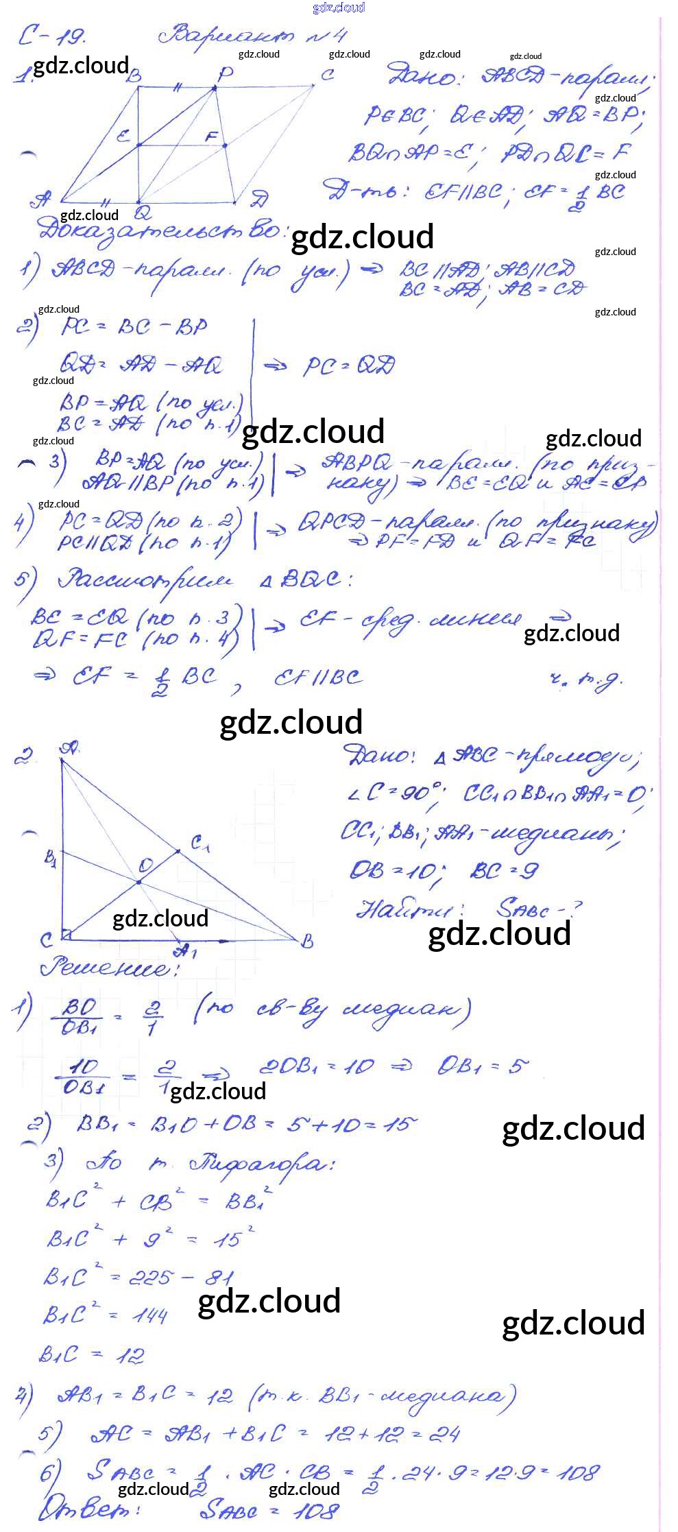 СР №19. Средняя линия треугольника. Свойства медиан Ответы к Самостоятельным работам по Геометрии 8 класс Дидактические материалы Зив Просвещение