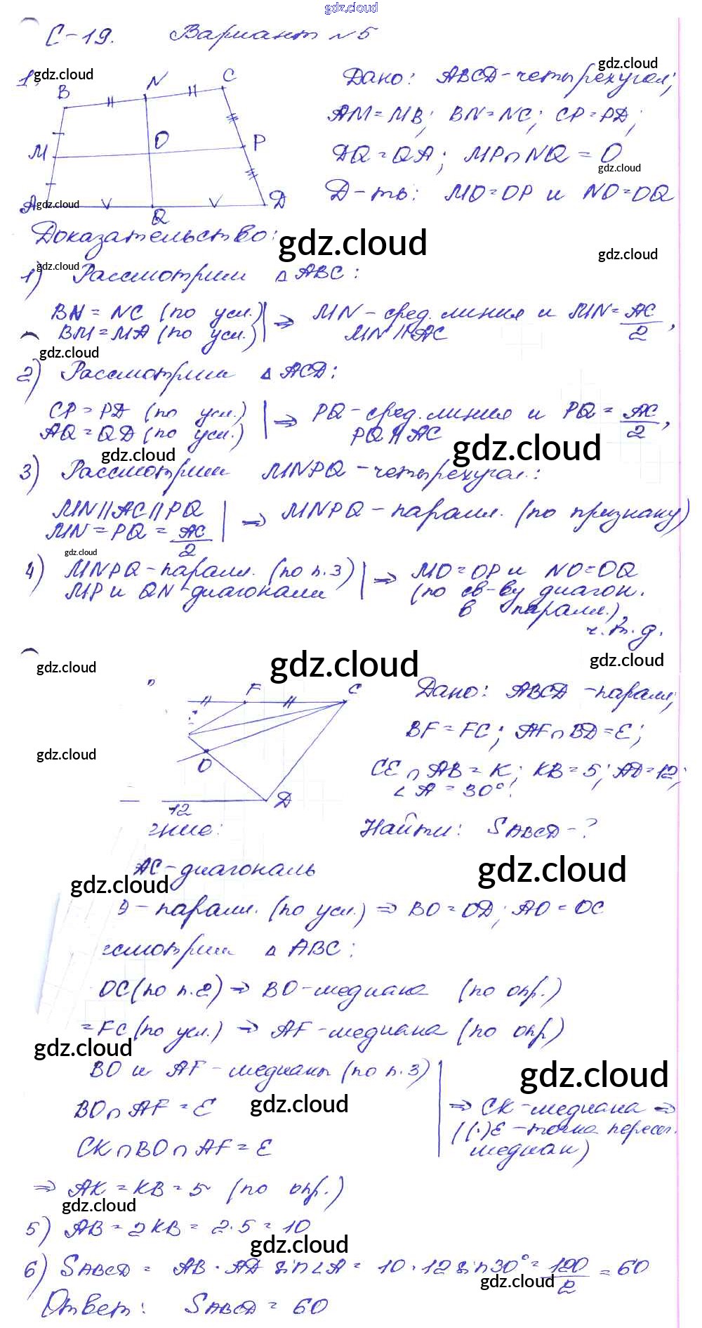 СР №19. Средняя линия треугольника. Свойства медиан Ответы к Самостоятельным работам по Геометрии 8 класс Дидактические материалы Зив Просвещение