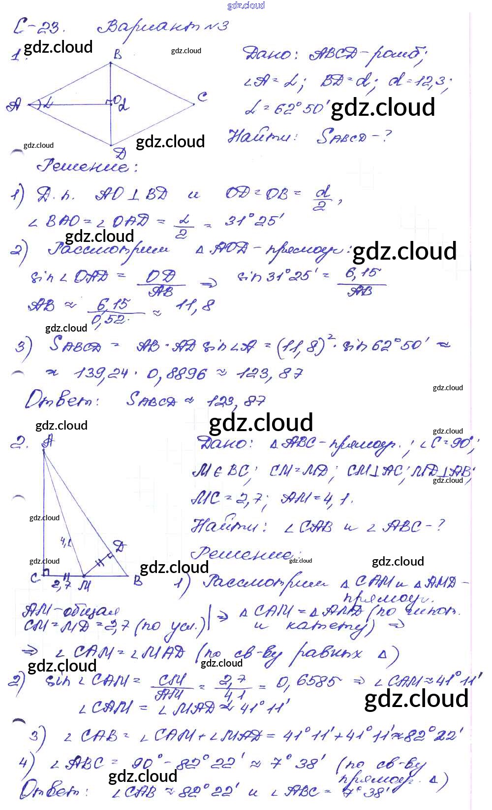 СР №23. Решение прямоугольных треугольников Ответы к Самостоятельным работам по Геометрии 8 класс Дидактические материалы Зив Просвещение