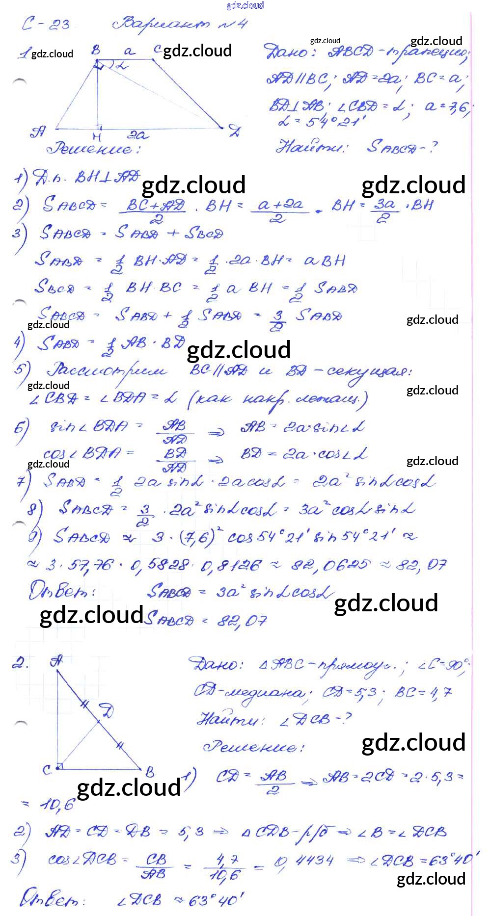 СР №23. Решение прямоугольных треугольников Ответы к Самостоятельным работам по Геометрии 8 класс Дидактические материалы Зив Просвещение