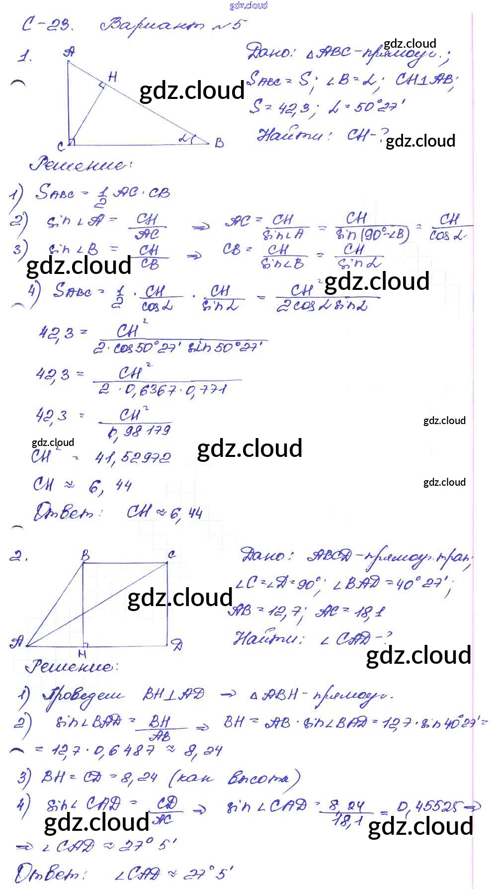 СР №23. Решение прямоугольных треугольников Ответы к Самостоятельным работам по Геометрии 8 класс Дидактические материалы Зив Просвещение