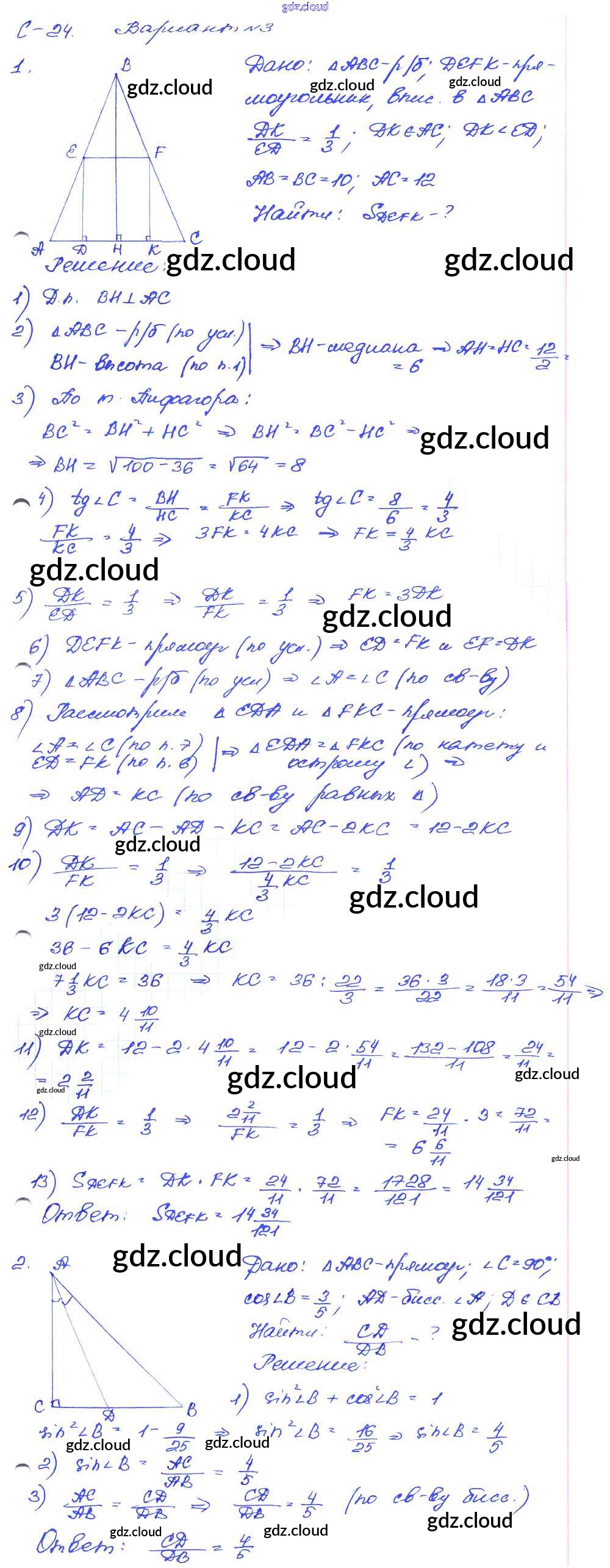 СР №24. Подобие треугольников Ответы к Самостоятельным работам по Геометрии 8 класс Дидактические материалы Зив Просвещение