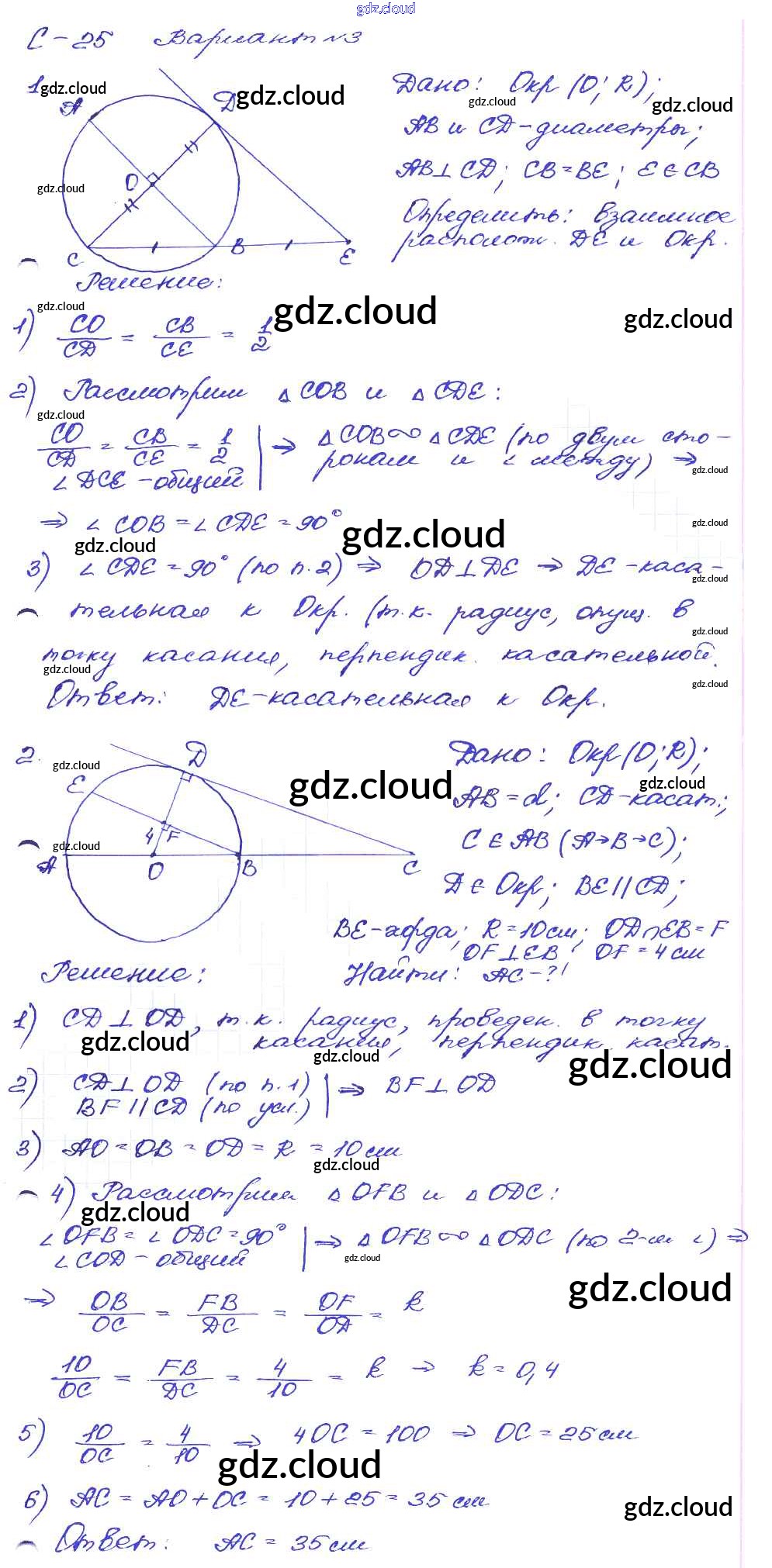 СР №25. Взаимное расположение прямой и окружности Ответы к Самостоятельным работам по Геометрии 8 класс Дидактические материалы Зив Просвещение