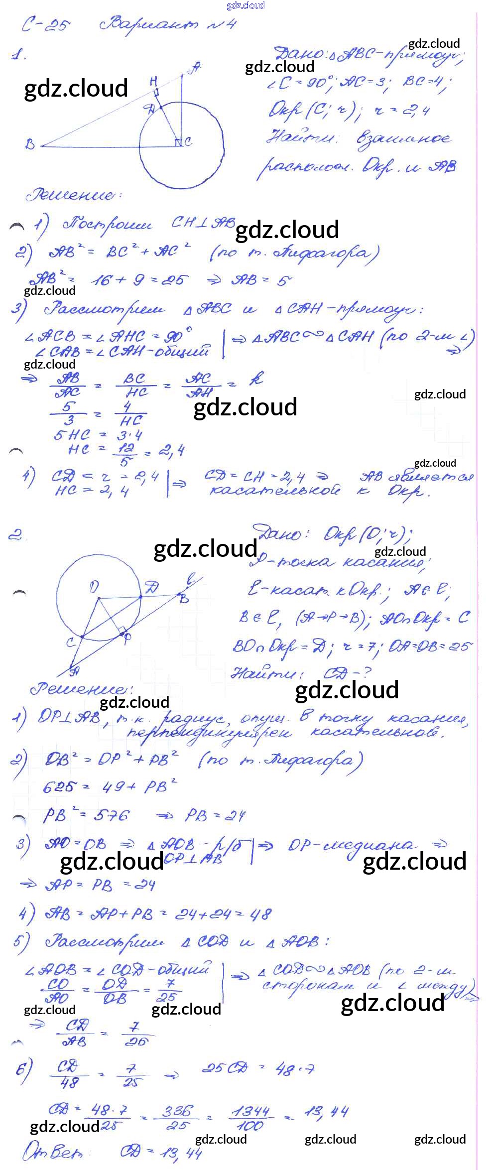 СР №25. Взаимное расположение прямой и окружности Ответы к Самостоятельным работам по Геометрии 8 класс Дидактические материалы Зив Просвещение