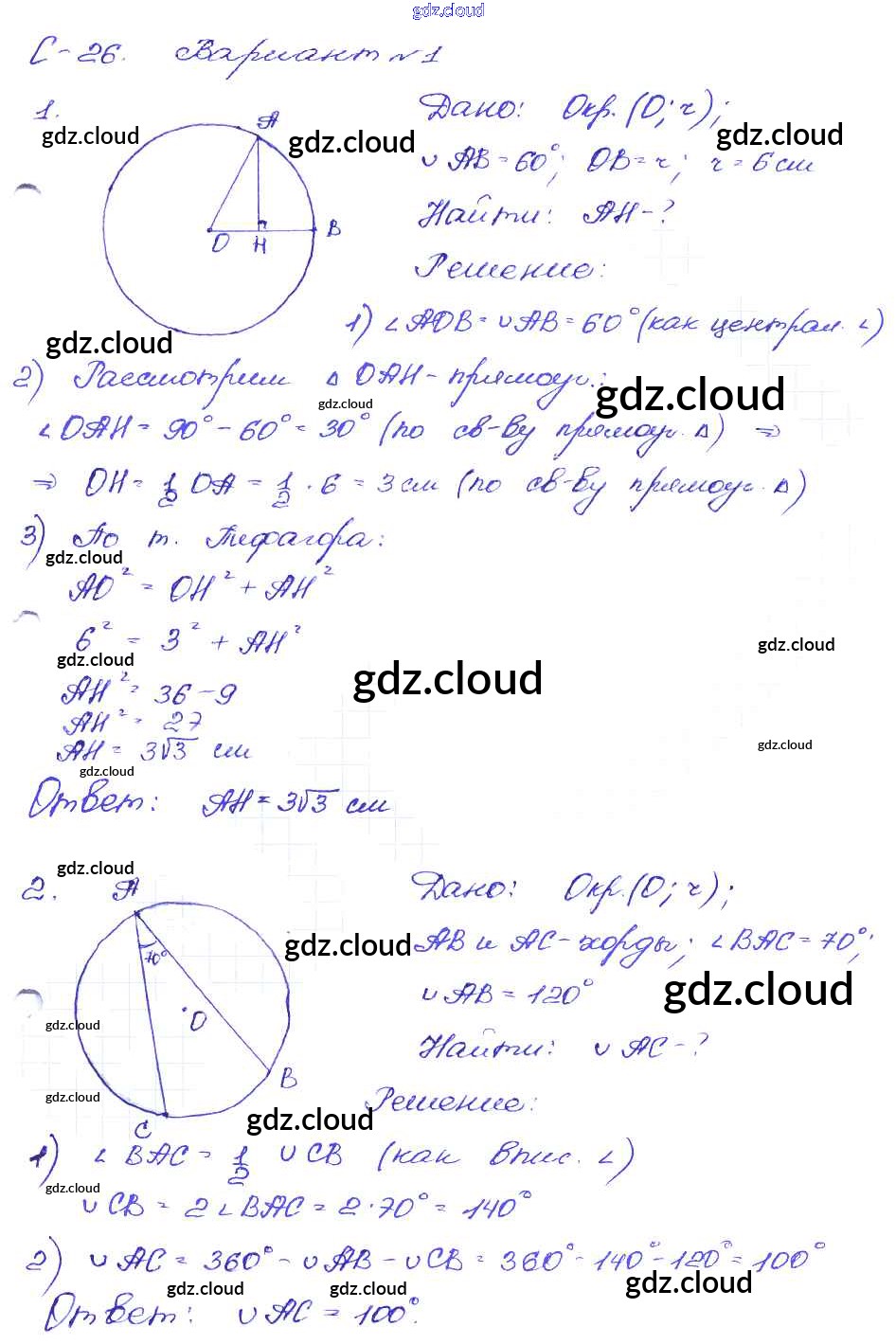 СР №26. Теорема о вписанном угле Ответы к Самостоятельным работам по Геометрии 8 класс Дидактические материалы Зив Просвещение