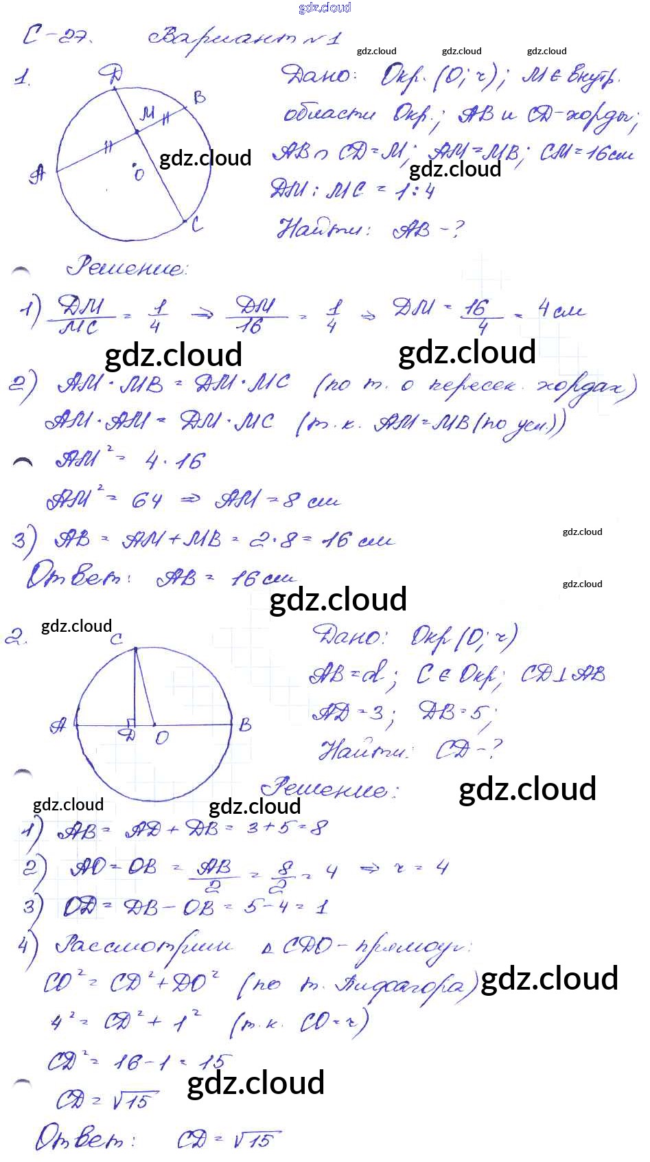 СР №27. Теорема о произведении отрезков хорд Ответы к Самостоятельным работам по Геометрии 8 класс Дидактические материалы Зив Просвещение
