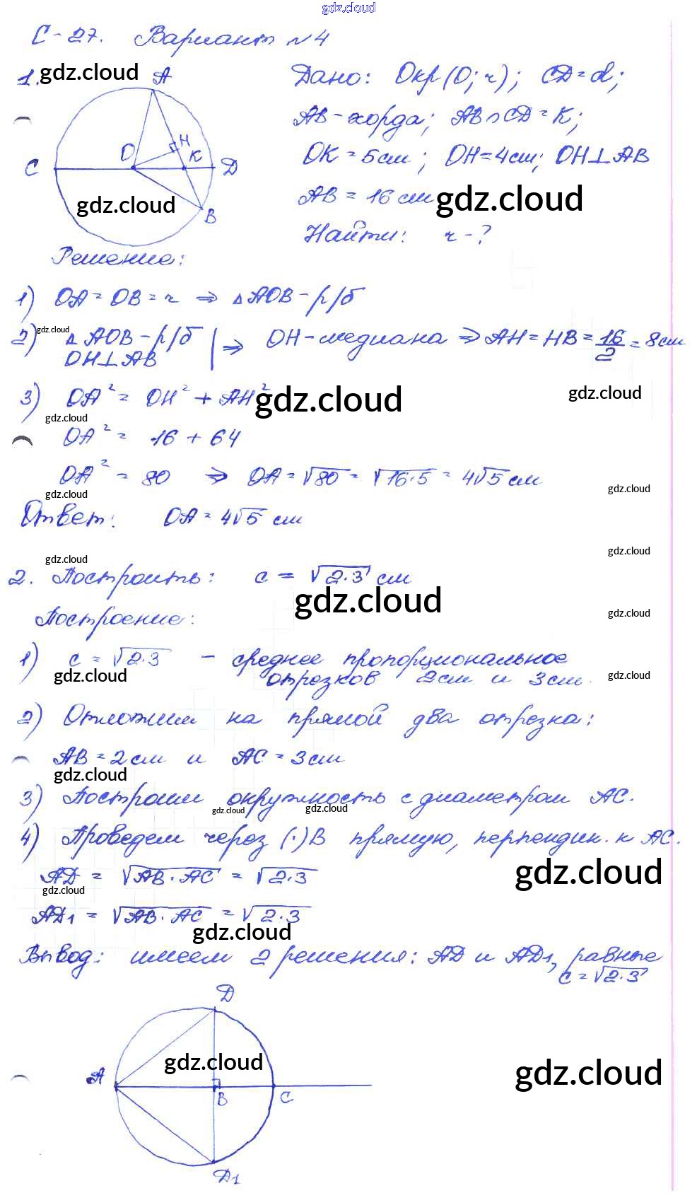 СР №27. Теорема о произведении отрезков хорд Ответы к Самостоятельным работам по Геометрии 8 класс Дидактические материалы Зив Просвещение