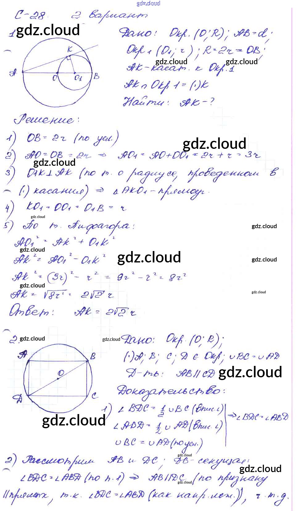 СР №28. Окружность Ответы к Самостоятельным работам по Геометрии 8 класс Дидактические материалы Зив Просвещение