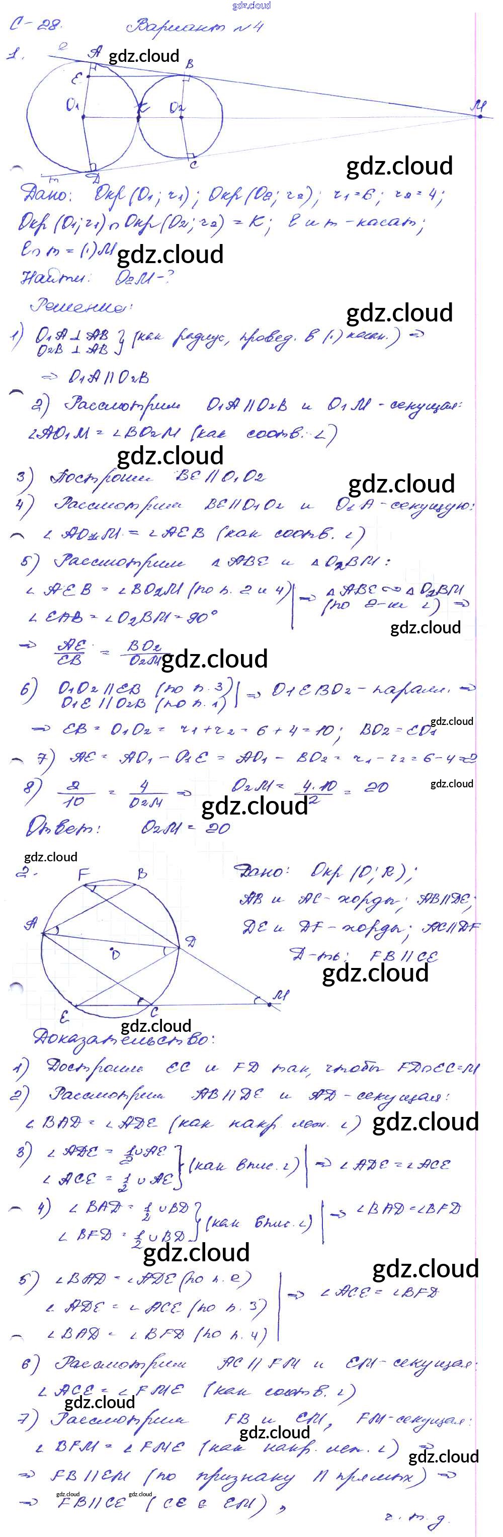 СР №28. Окружность Ответы к Самостоятельным работам по Геометрии 8 класс Дидактические материалы Зив Просвещение
