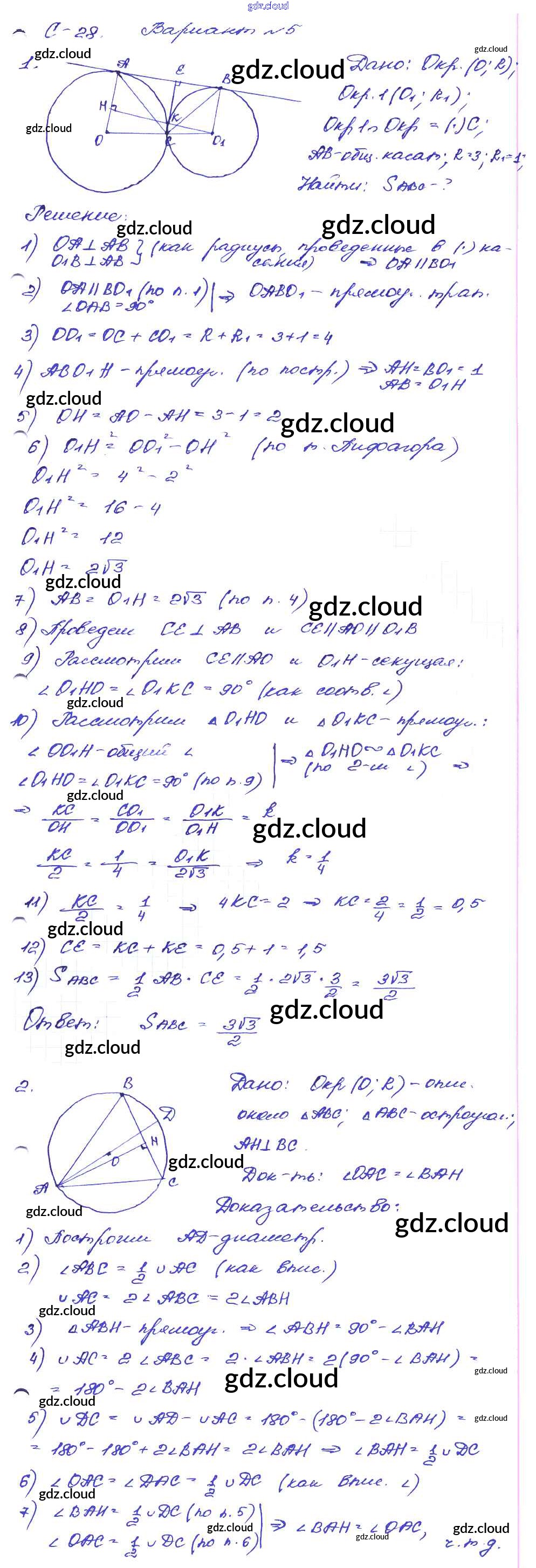 СР №28. Окружность Ответы к Самостоятельным работам по Геометрии 8 класс Дидактические материалы Зив Просвещение