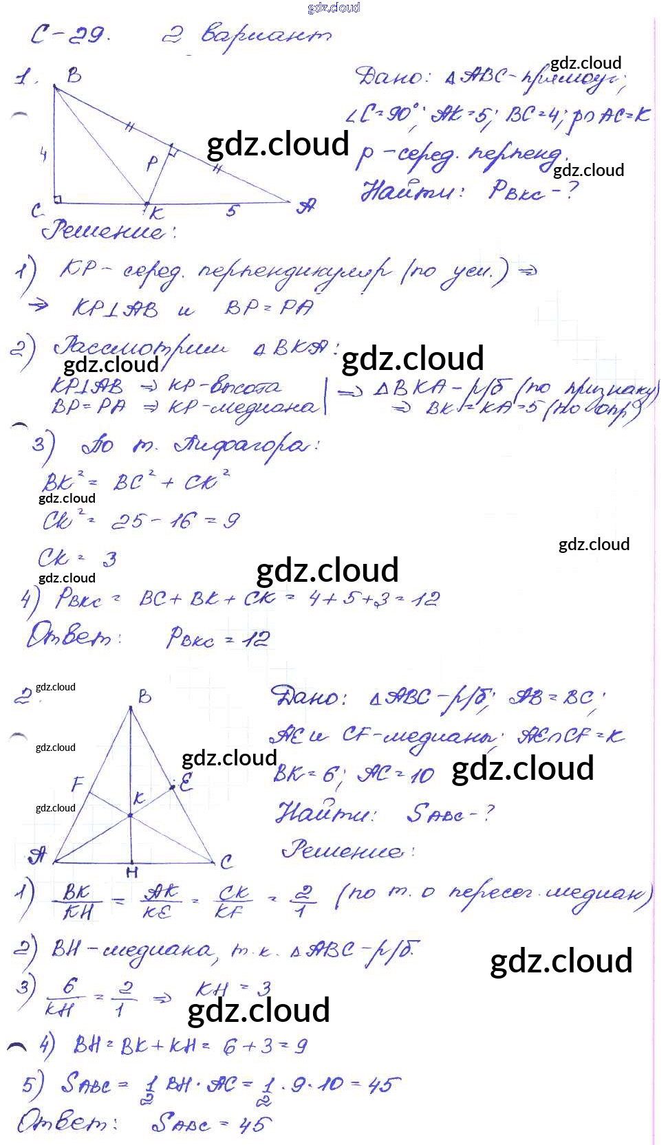 СР №29. Четыре замечательные точки треугольника Ответы к Самостоятельным работам по Геометрии 8 класс Дидактические материалы Зив Просвещение