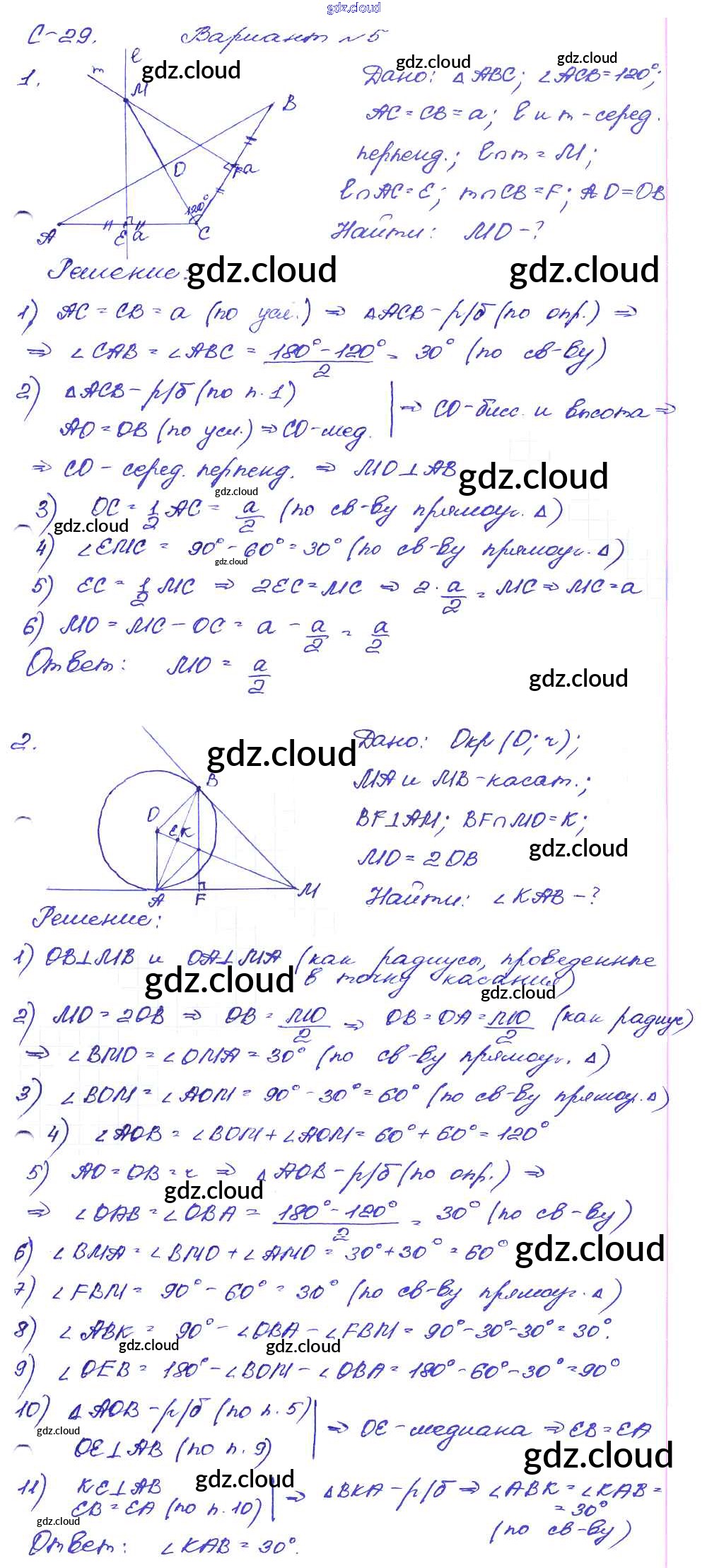 СР №29. Четыре замечательные точки треугольника Ответы к Самостоятельным работам по Геометрии 8 класс Дидактические материалы Зив Просвещение