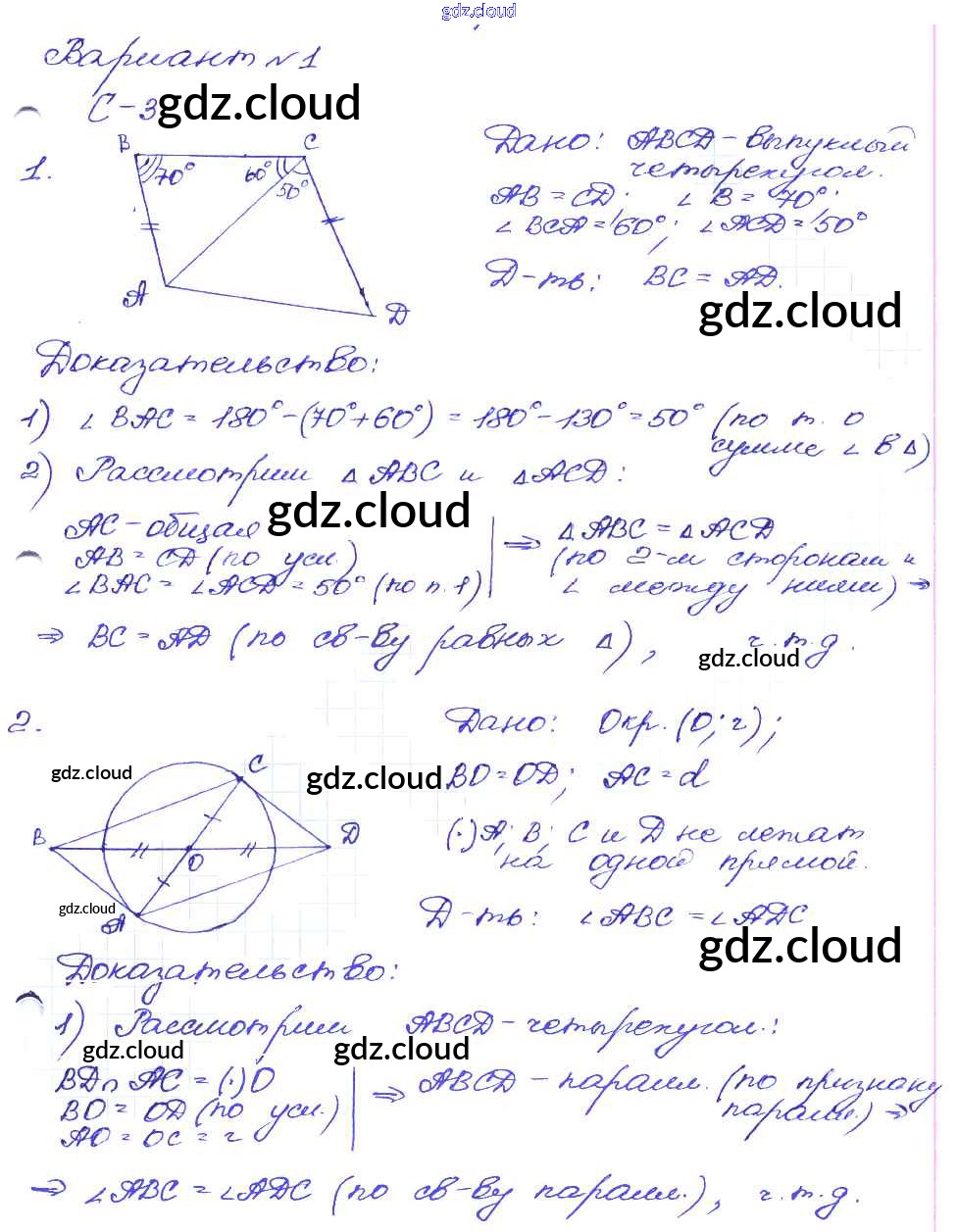 Ответ на задание вариант-1 Дидактические материалы Геометрия за 8 (восьмой) класс Зив, Мейлер 2016