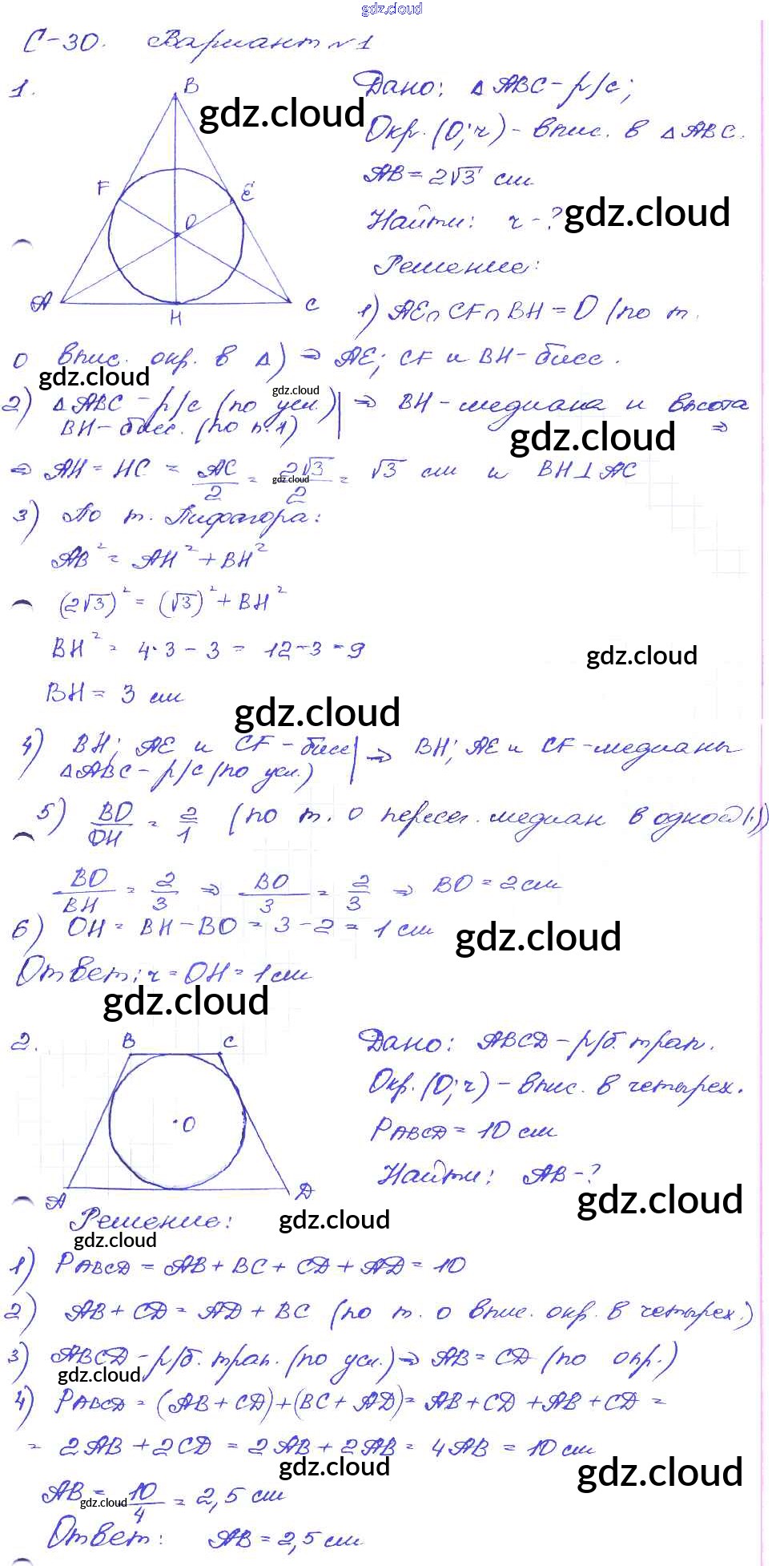 СР №30. Вписанная окружность Ответы к Самостоятельным работам по Геометрии 8 класс Дидактические материалы Зив Просвещение
