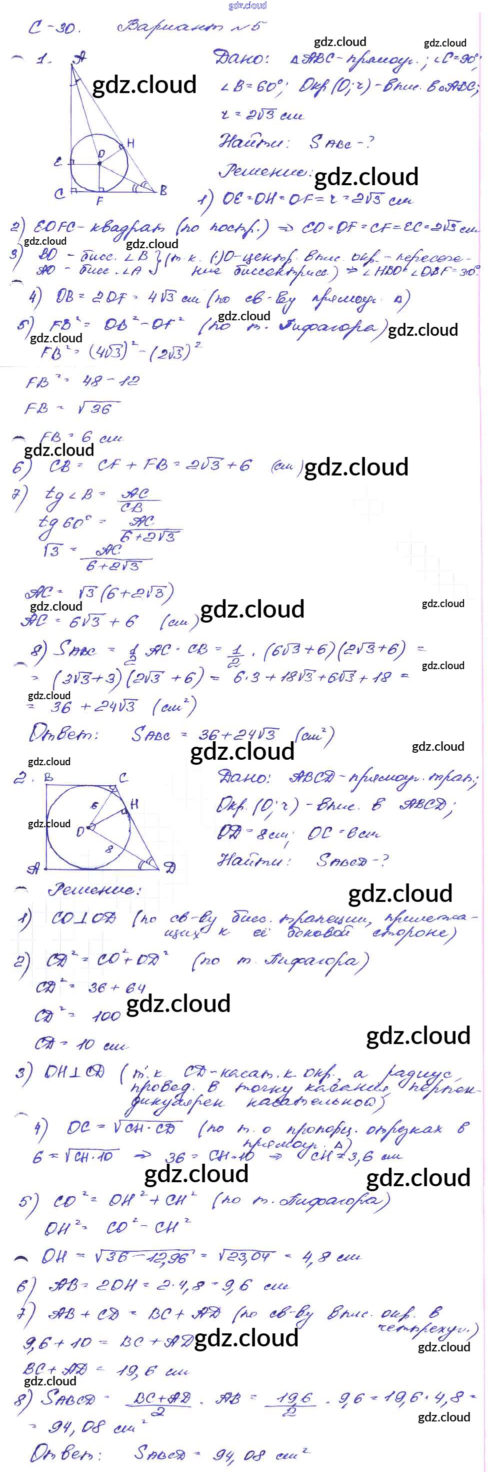 СР №30. Вписанная окружность Ответы к Самостоятельным работам по Геометрии 8 класс Дидактические материалы Зив Просвещение