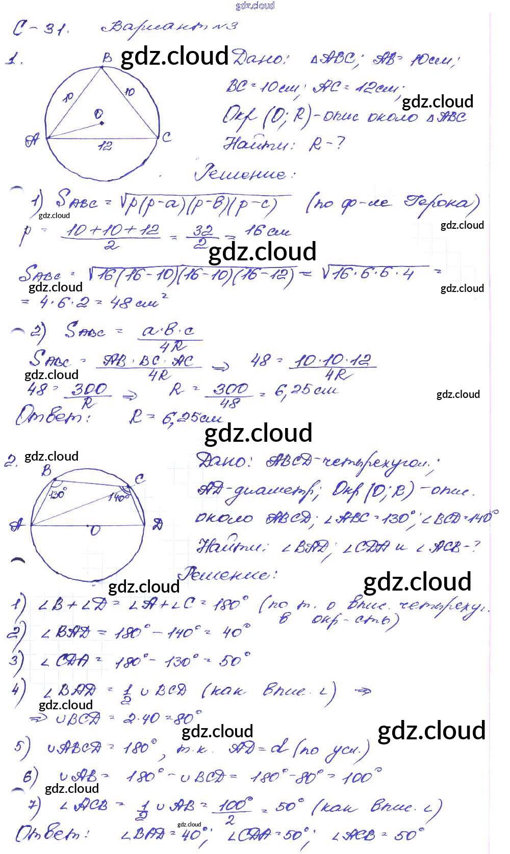 СР №31. Описанная окружность Ответы к Самостоятельным работам по Геометрии 8 класс Дидактические материалы Зив Просвещение