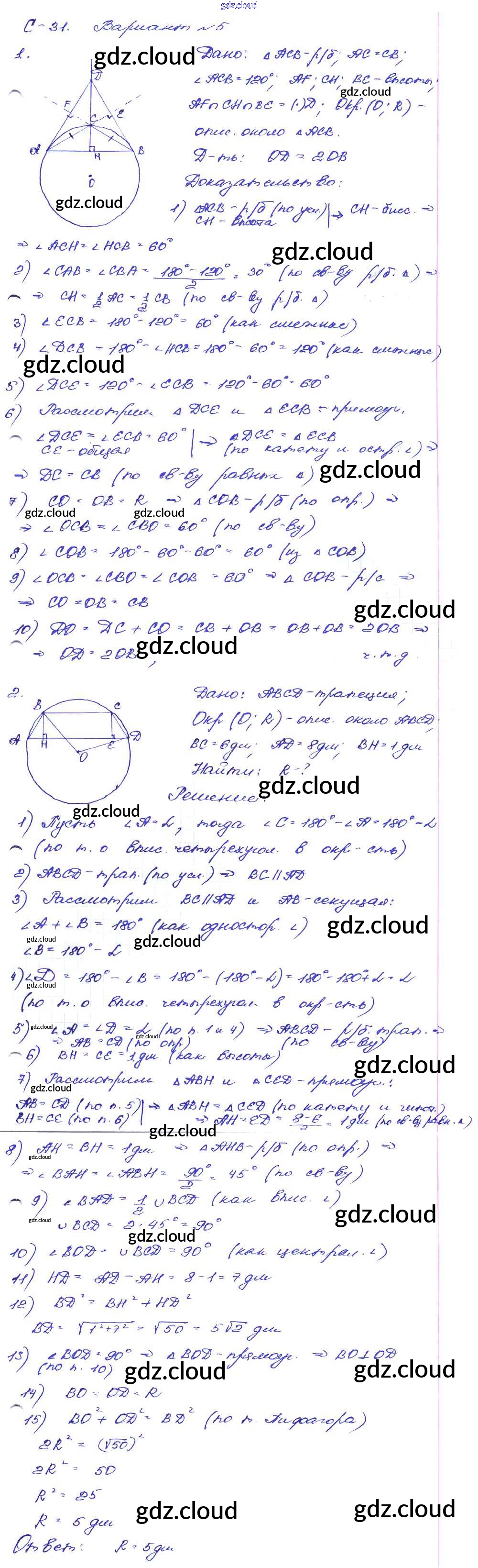 СР №31. Описанная окружность Ответы к Самостоятельным работам по Геометрии 8 класс Дидактические материалы Зив Просвещение