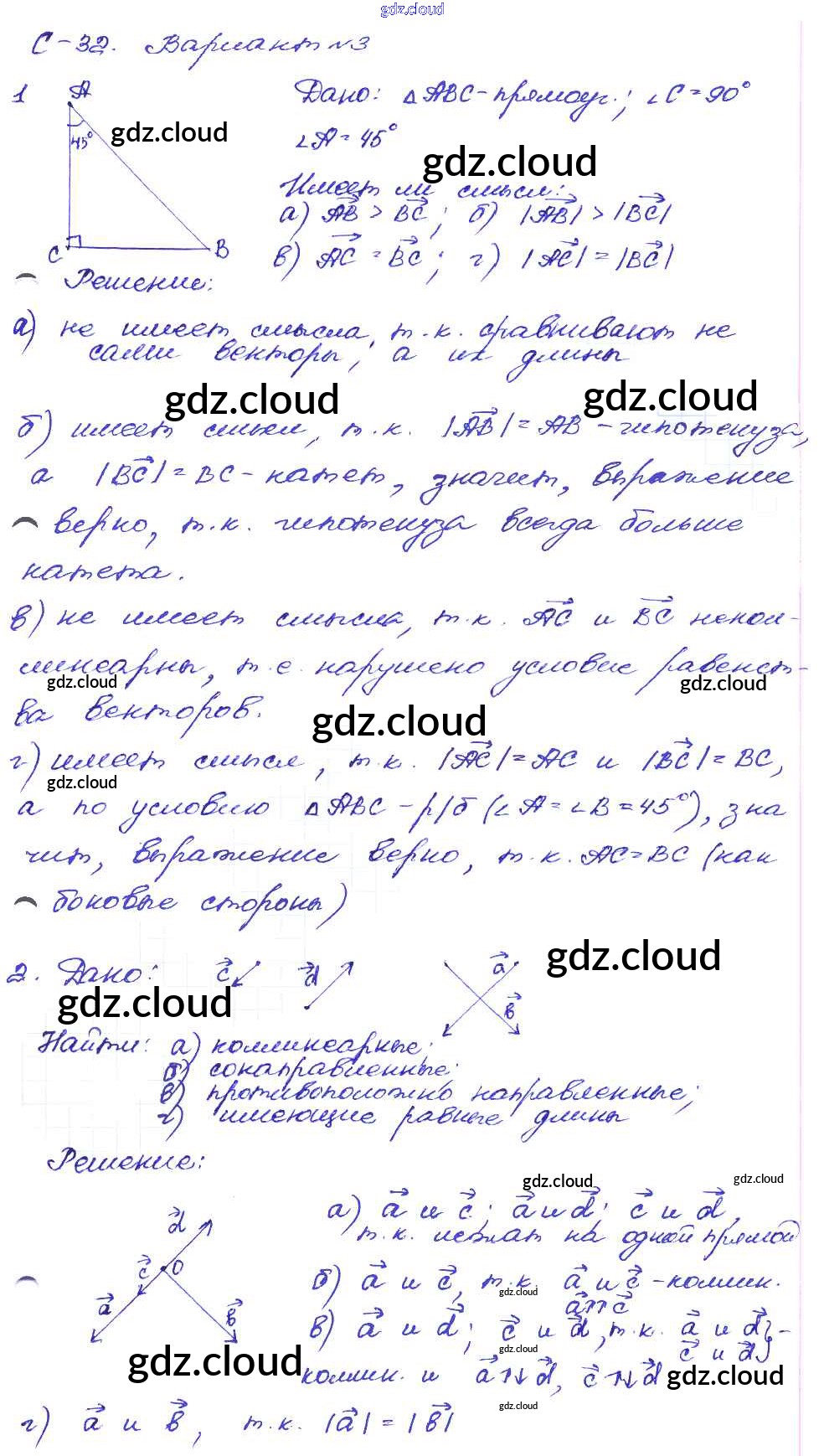СР №32. Понятие вектора Ответы к Самостоятельным работам по Геометрии 8 класс Дидактические материалы Зив Просвещение