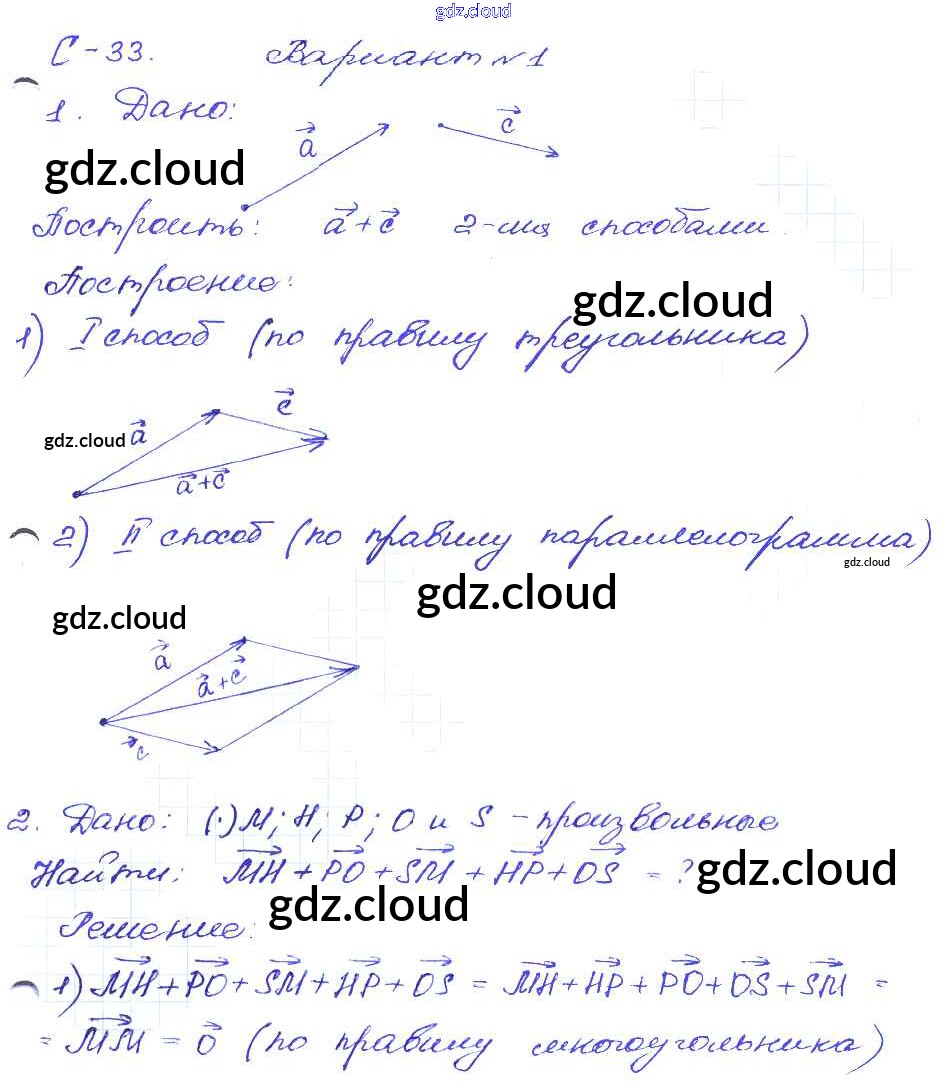 СР №33. Сложение векторов Ответы к Самостоятельным работам по Геометрии 8 класс Дидактические материалы Зив Просвещение