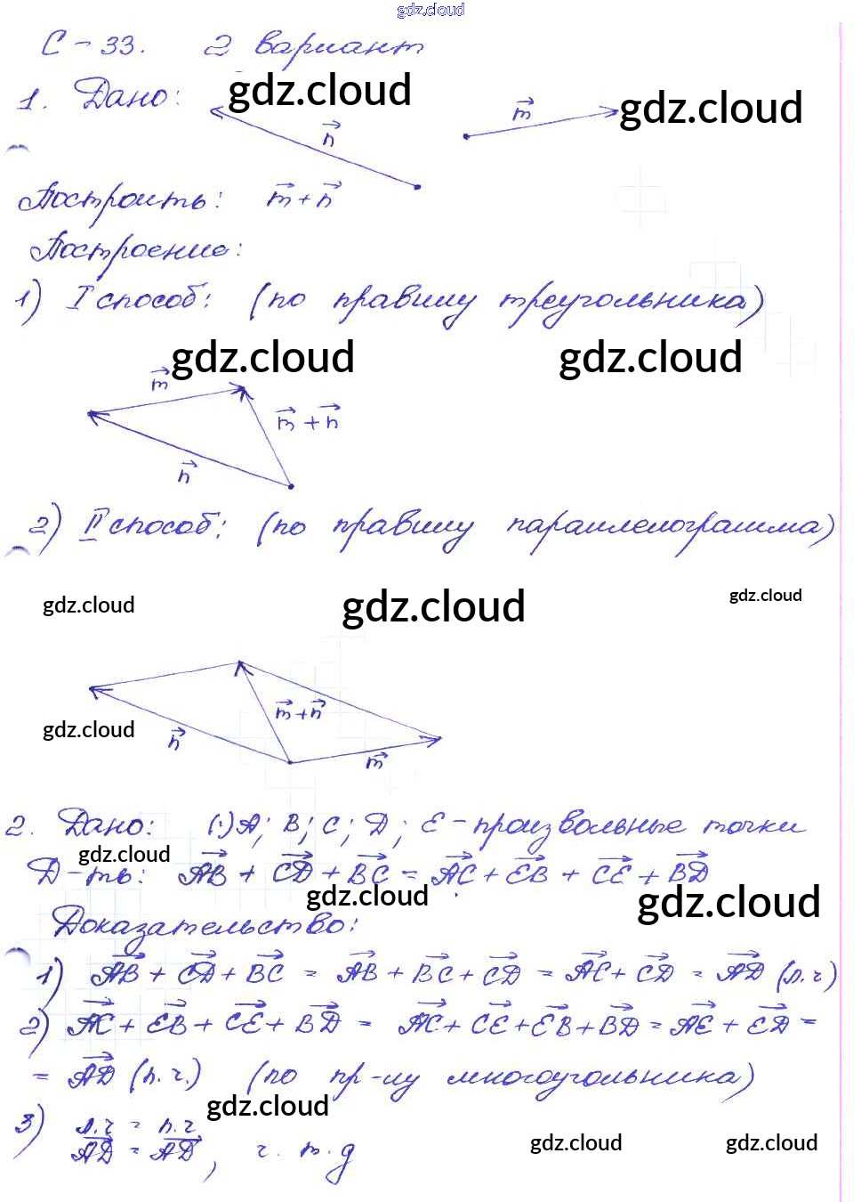 СР №33. Сложение векторов Ответы к Самостоятельным работам по Геометрии 8 класс Дидактические материалы Зив Просвещение