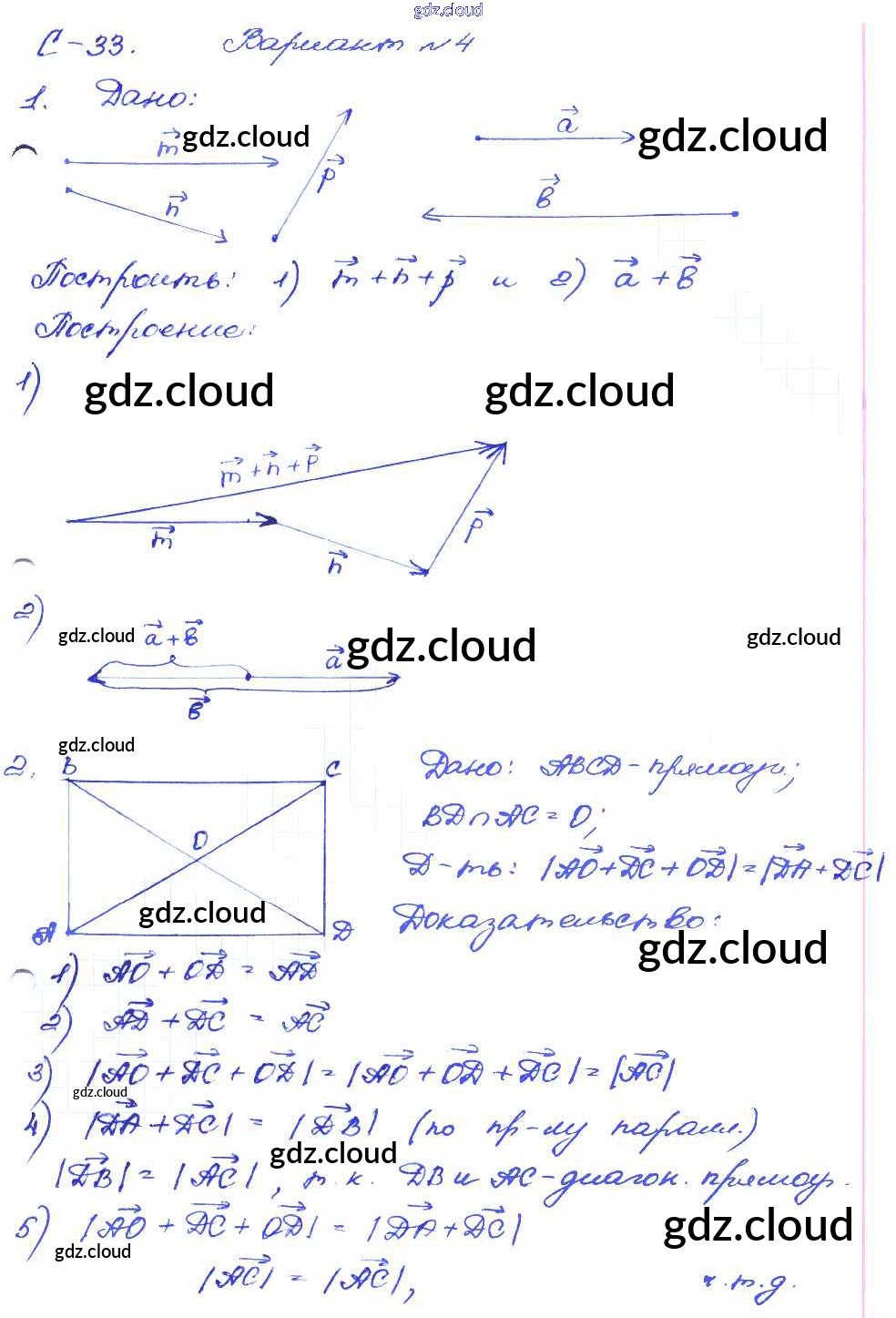 СР №33. Сложение векторов Ответы к Самостоятельным работам по Геометрии 8 класс Дидактические материалы Зив Просвещение