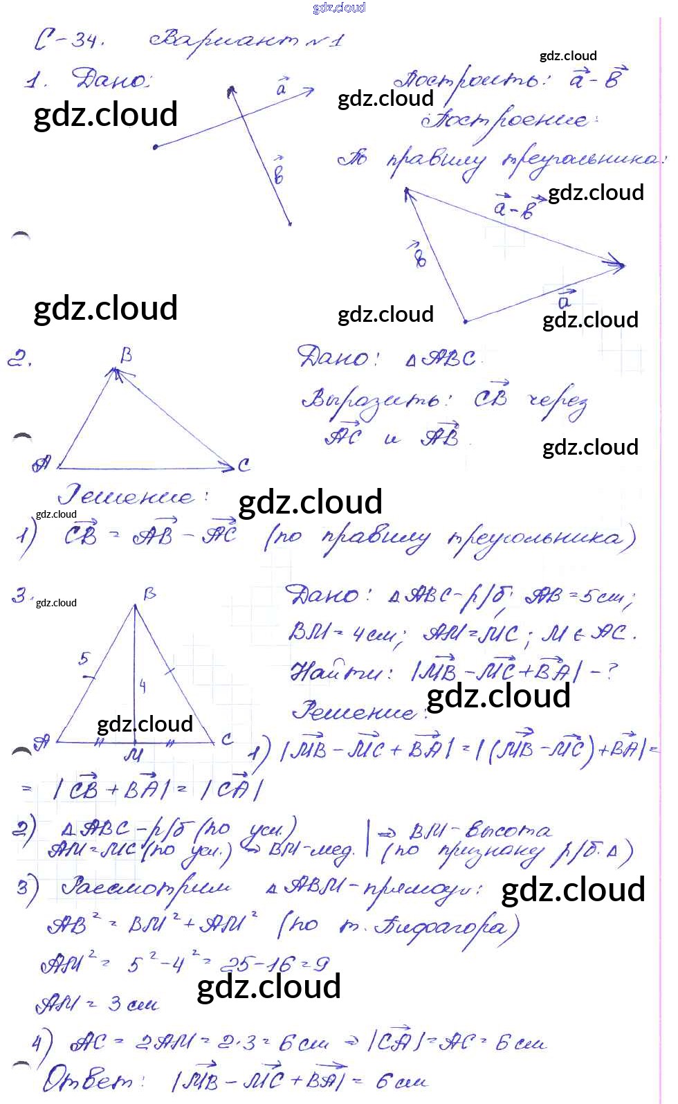 СР №34. Вычитание векторов Ответы к Самостоятельным работам по Геометрии 8 класс Дидактические материалы Зив Просвещение