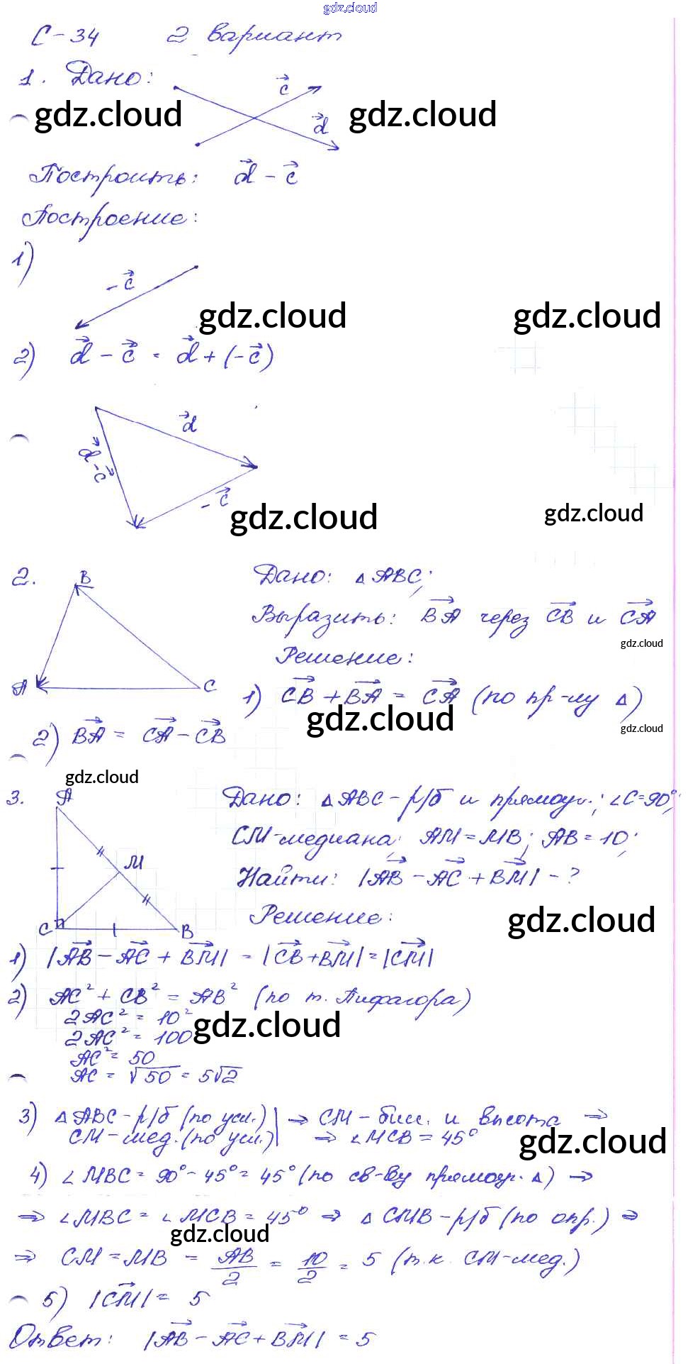 СР №34. Вычитание векторов Ответы к Самостоятельным работам по Геометрии 8 класс Дидактические материалы Зив Просвещение