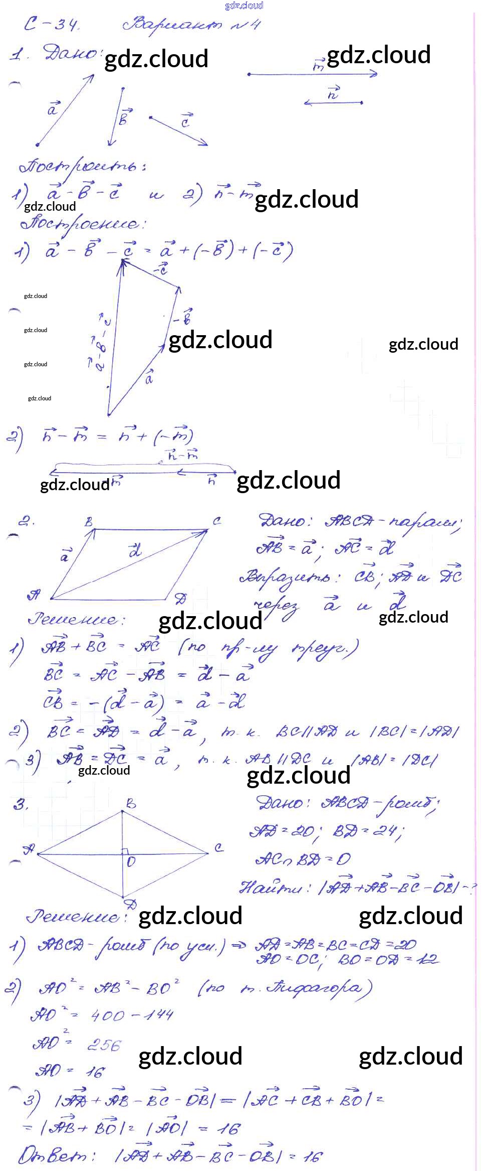 СР №34. Вычитание векторов Ответы к Самостоятельным работам по Геометрии 8 класс Дидактические материалы Зив Просвещение