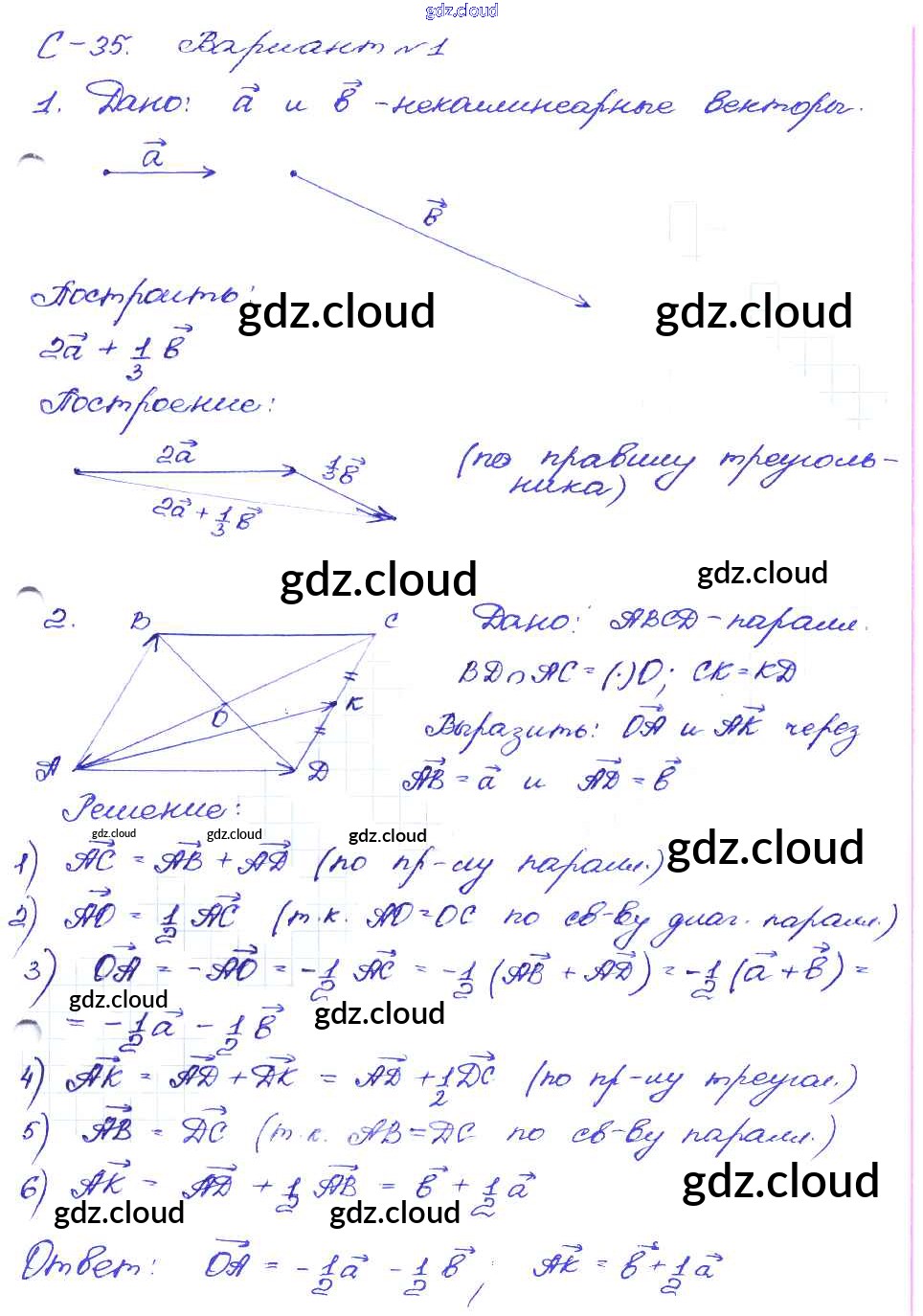 СР №35. Умножение вектора на число Ответы к Самостоятельным работам по Геометрии 8 класс Дидактические материалы Зив Просвещение