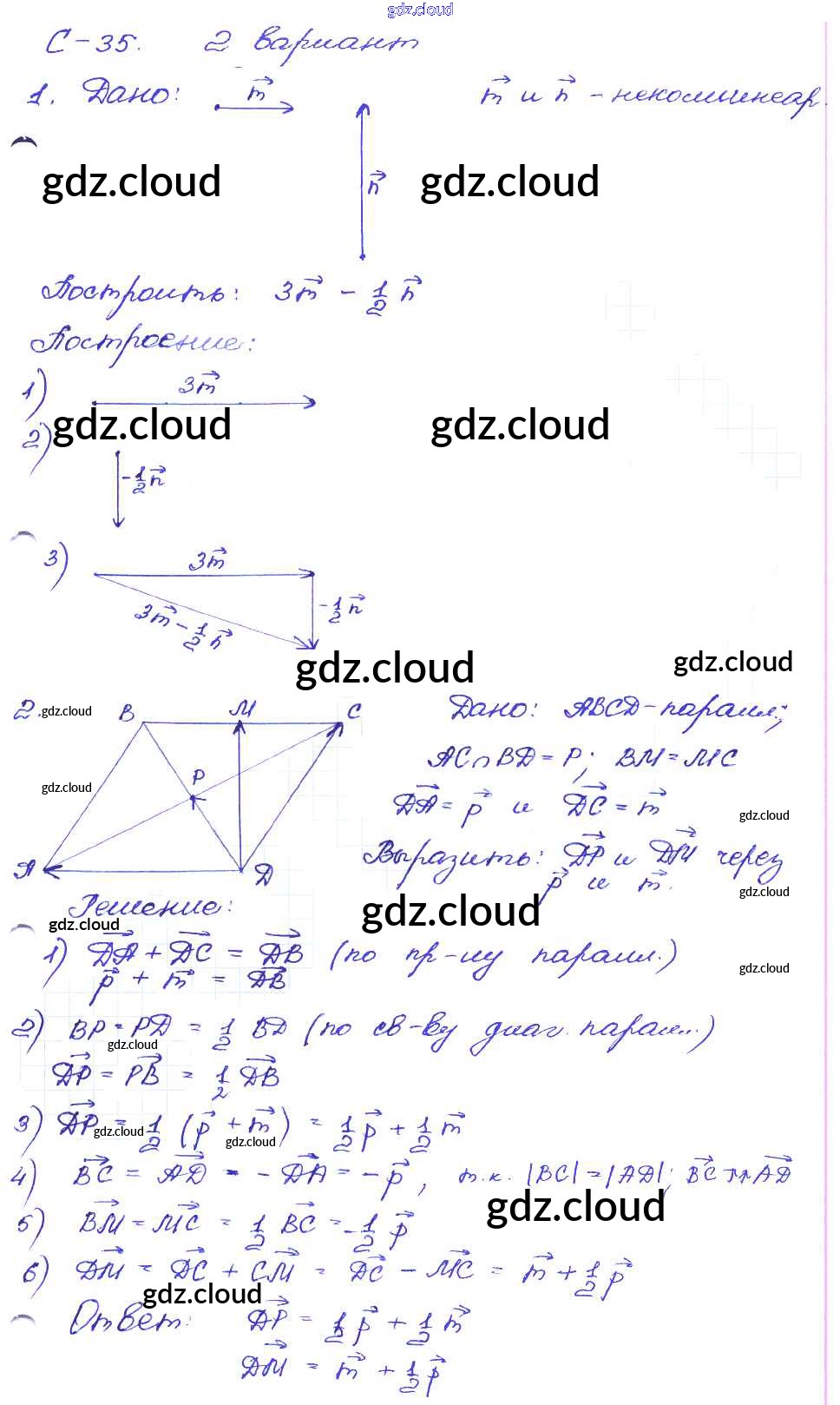 СР №35. Умножение вектора на число Ответы к Самостоятельным работам по Геометрии 8 класс Дидактические материалы Зив Просвещение