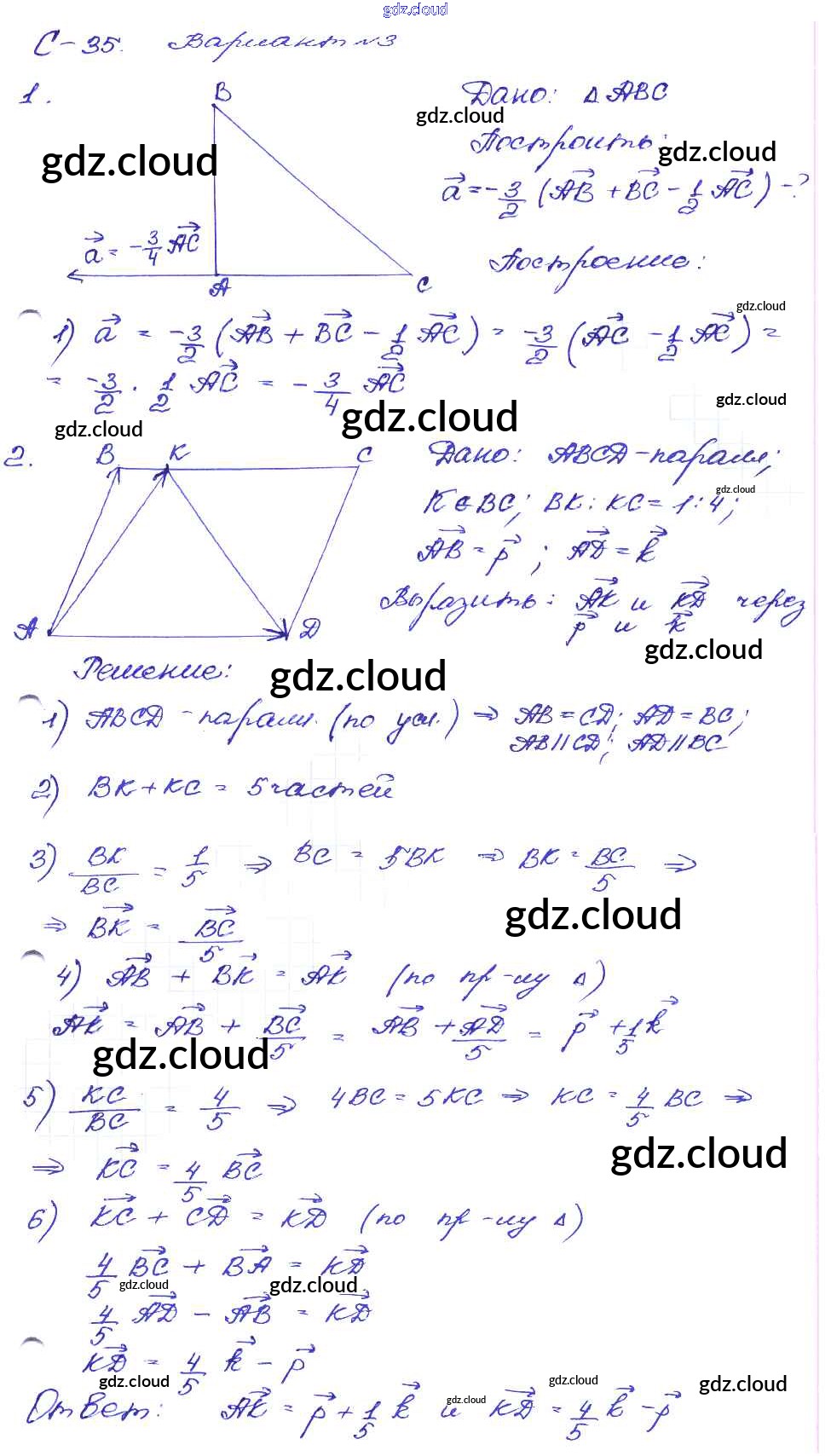 СР №35. Умножение вектора на число Ответы к Самостоятельным работам по Геометрии 8 класс Дидактические материалы Зив Просвещение