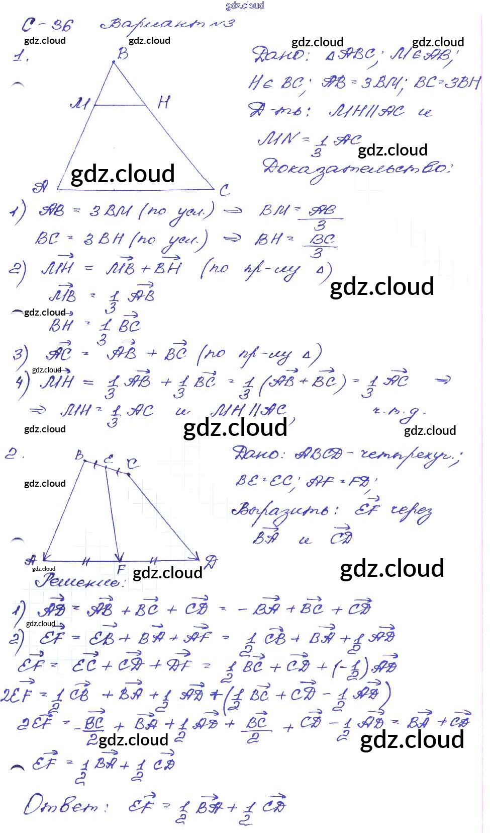 СР №36. Применение векторов к решению задач Ответы к Самостоятельным работам по Геометрии 8 класс Дидактические материалы Зив Просвещение