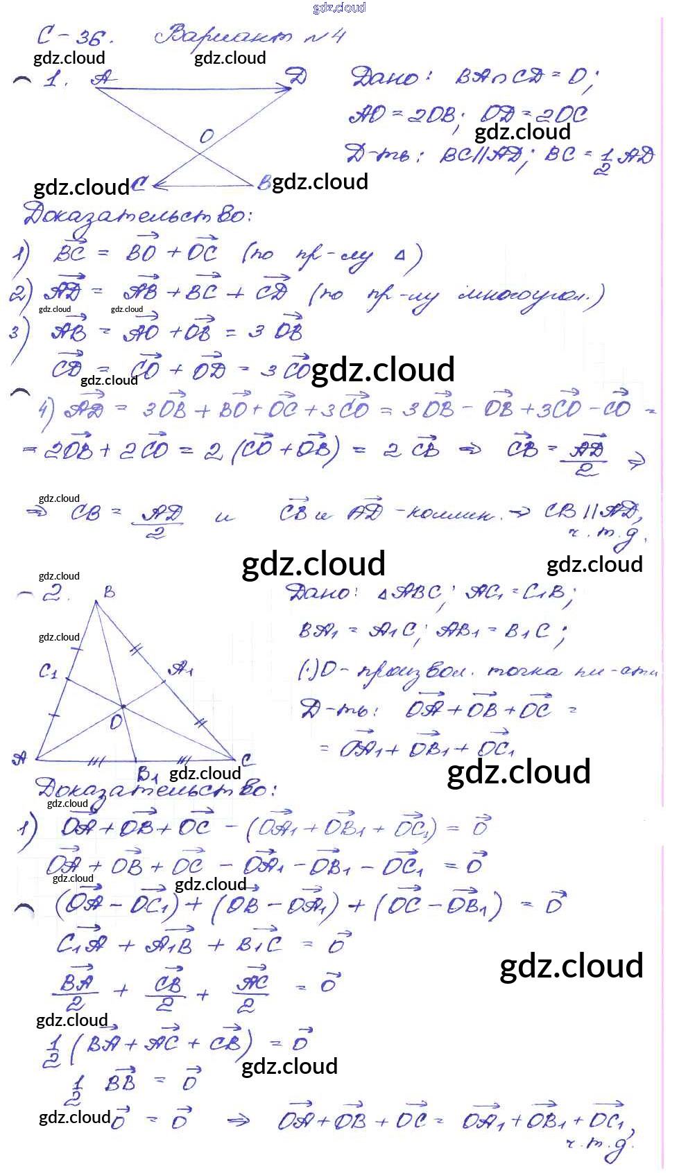 СР №36. Применение векторов к решению задач Ответы к Самостоятельным работам по Геометрии 8 класс Дидактические материалы Зив Просвещение