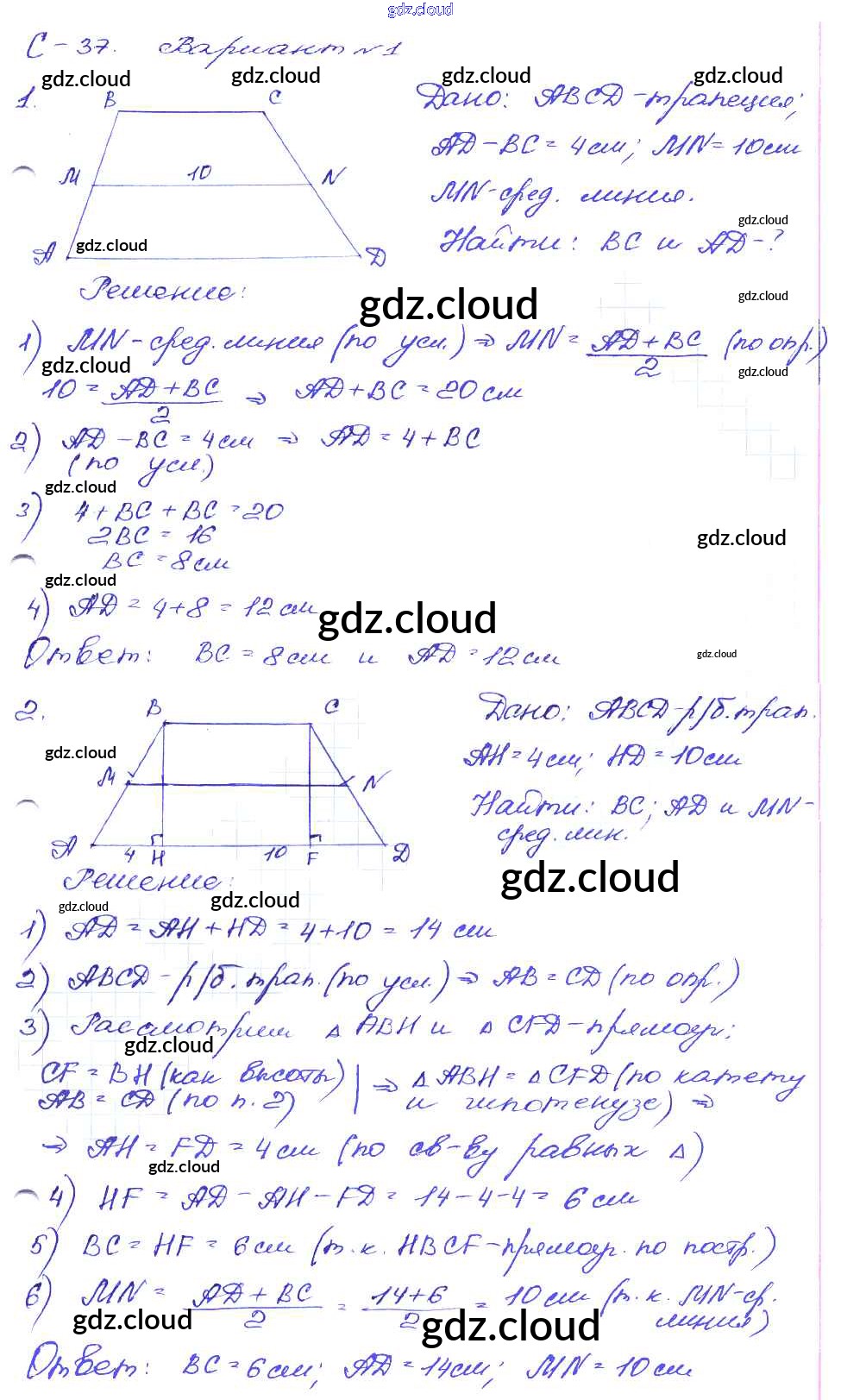 СР №37. Средняя линия трапеции Ответы к Самостоятельным работам по Геометрии 8 класс Дидактические материалы Зив Просвещение