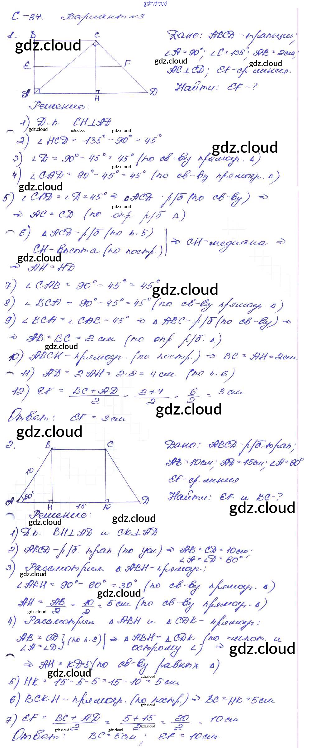 СР №37. Средняя линия трапеции Ответы к Самостоятельным работам по Геометрии 8 класс Дидактические материалы Зив Просвещение