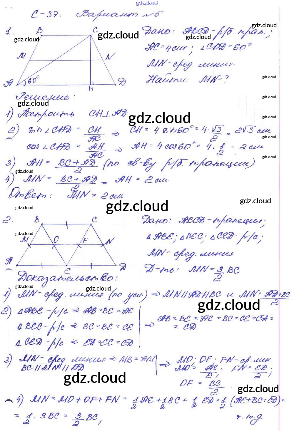 СР №37. Средняя линия трапеции Ответы к Самостоятельным работам по Геометрии 8 класс Дидактические материалы Зив Просвещение