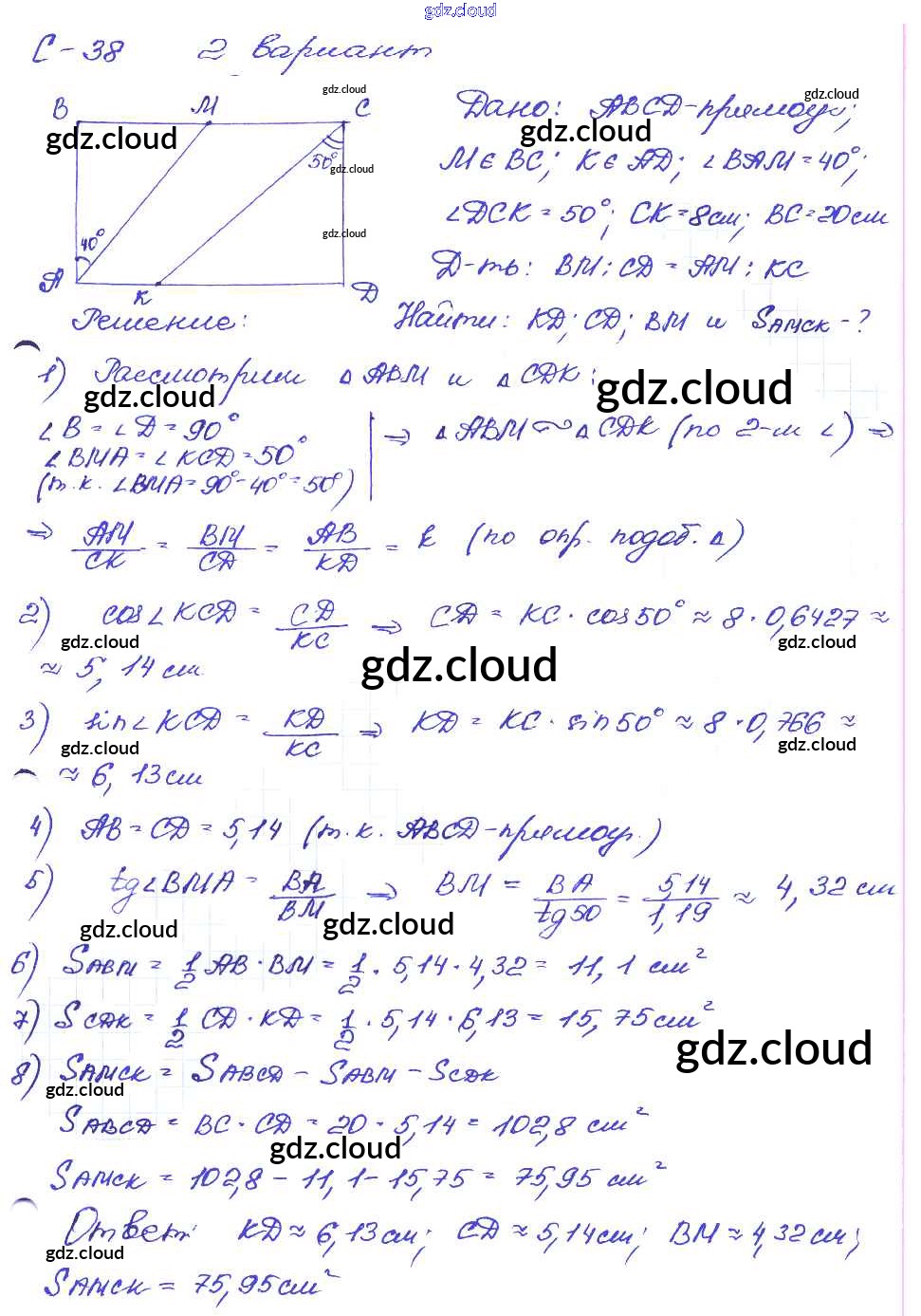 СР №38. Итоговое повторение Ответы к Самостоятельным работам по Геометрии 8 класс Дидактические материалы Зив Просвещение